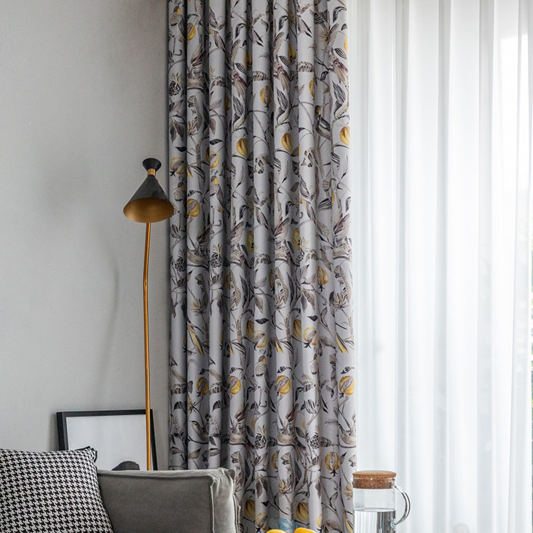 Harvest & Bird Multicolored Floral Yellow Gray Blackout Curtain