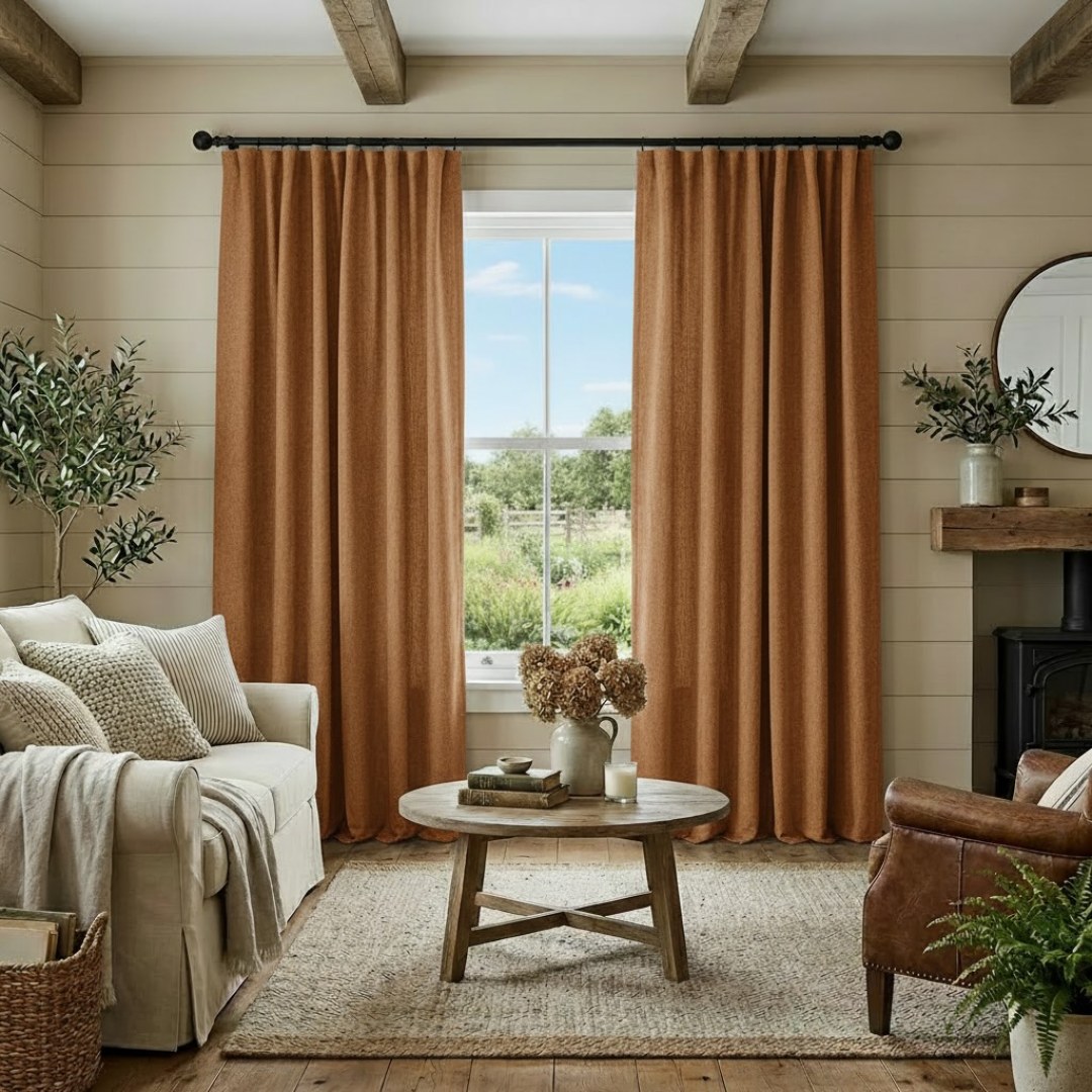 Pine Valley Terracotta Orange Blackout Curtain