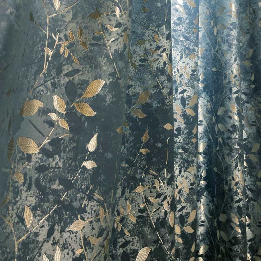 Luxuriously woven in jacquard, these curtains showcase an elegant floral design accented with subtle metallic gold highlights. The refined texture and modern color palettes create a sophisticated, contemporary look, perfect for adding depth, warmth, and a touch of glamour to any interior.