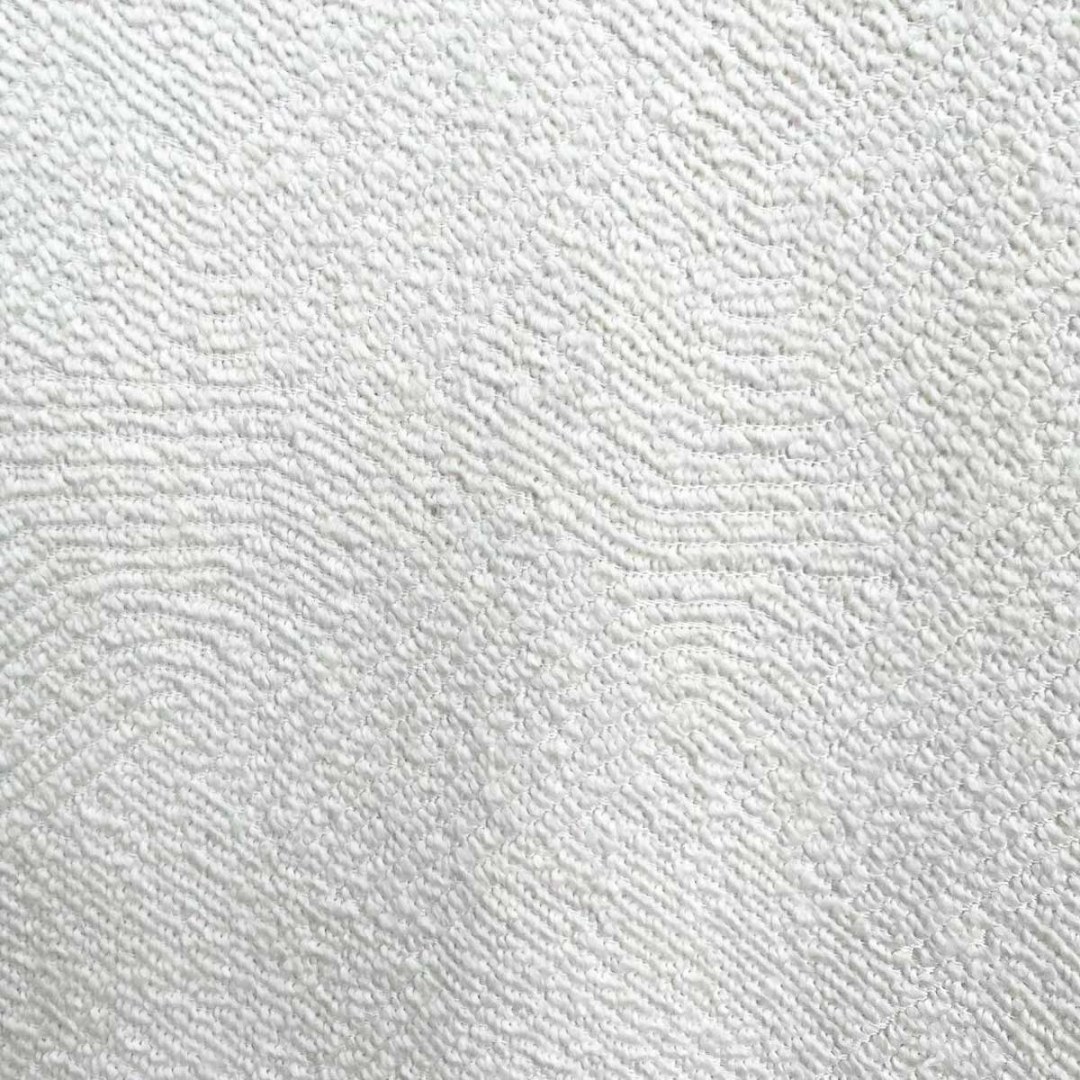 A contemporary curtain in ivory white featuring a bold geometric pattern. Its heavyweight wool chenille fabric adds texture and depth, bringing modern sophistication and tactile luxury to any interior.