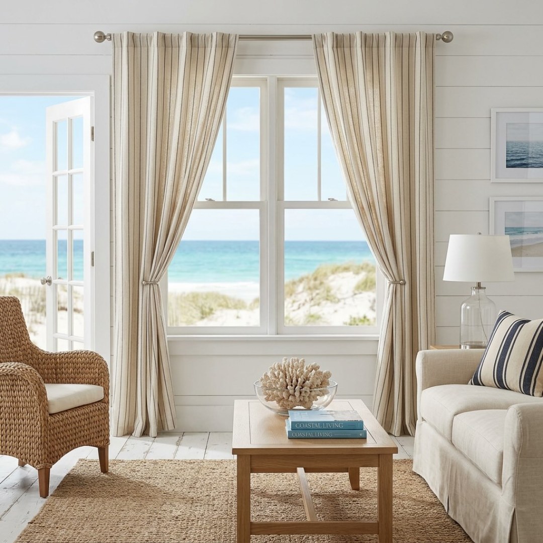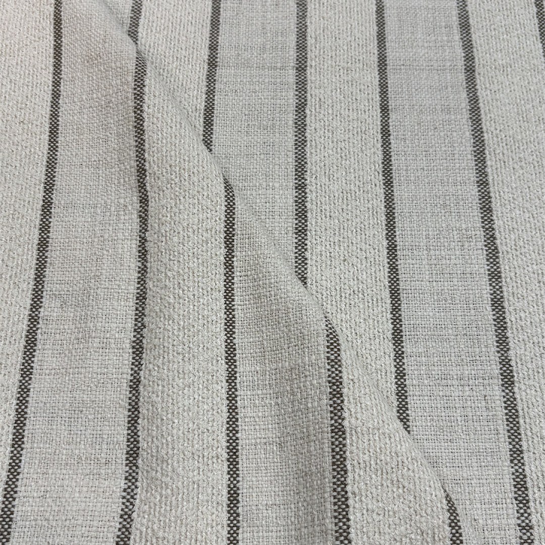 Haven Stripe Coffee Brown Natural Linen Cotton Blend Curtains