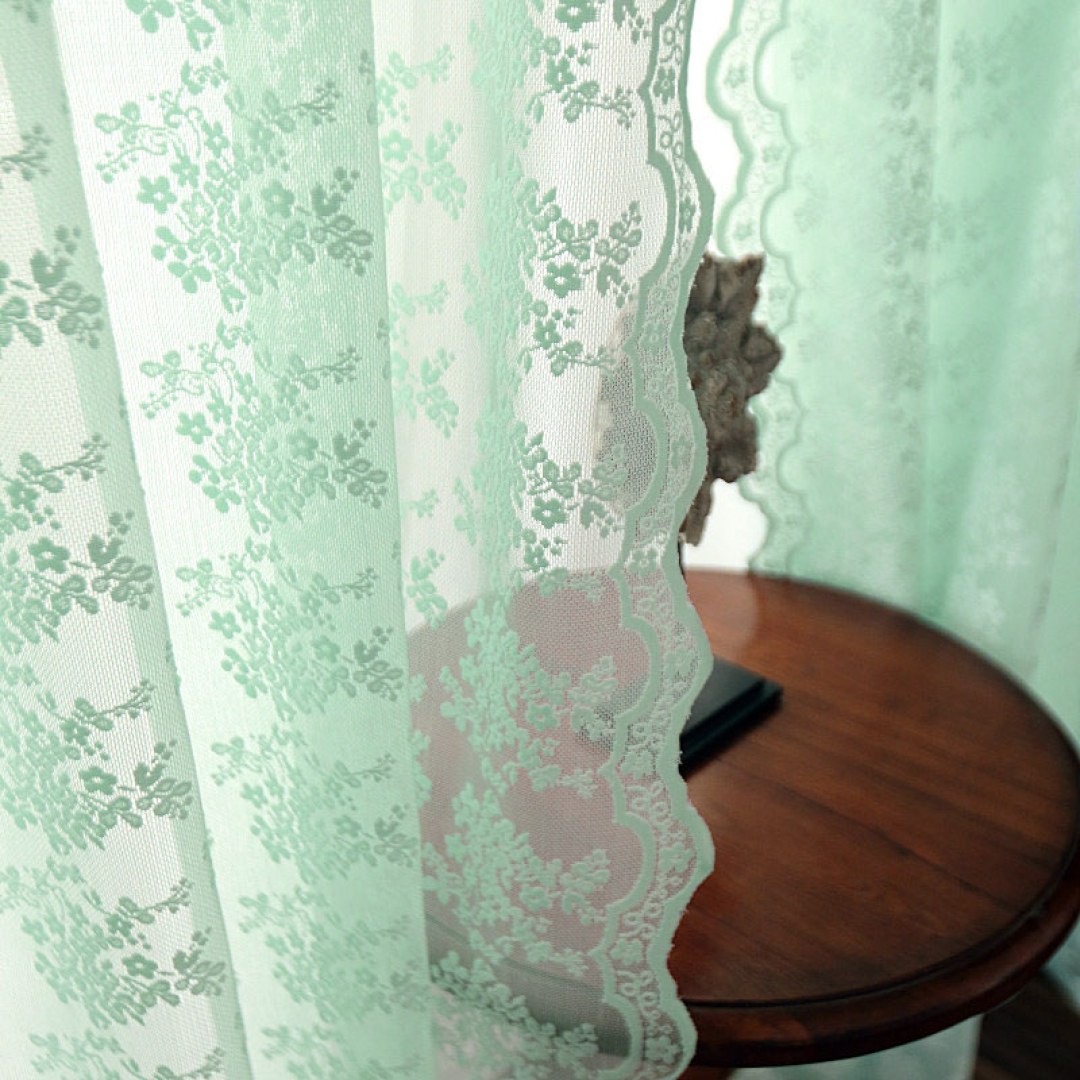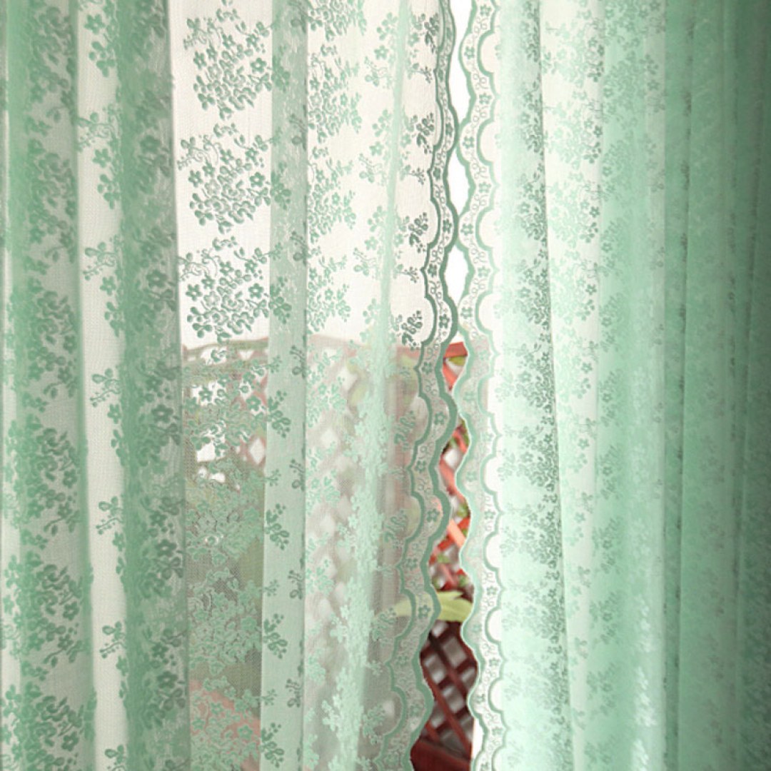 Delicately crafted with an intricate floral lace pattern and finished with a graceful scalloped edge, these voiles bring timeless elegance and soft, romantic charm to any space. Their airy net construction allows natural light to filter gently, while the subtle pastel hue adds a serene, inviting touch.