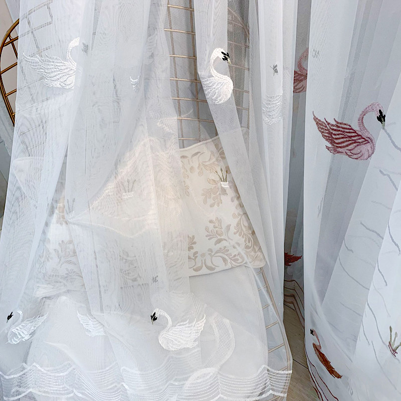 Royalty Sheer Curtains With Embroidered White Swans 10% OFF