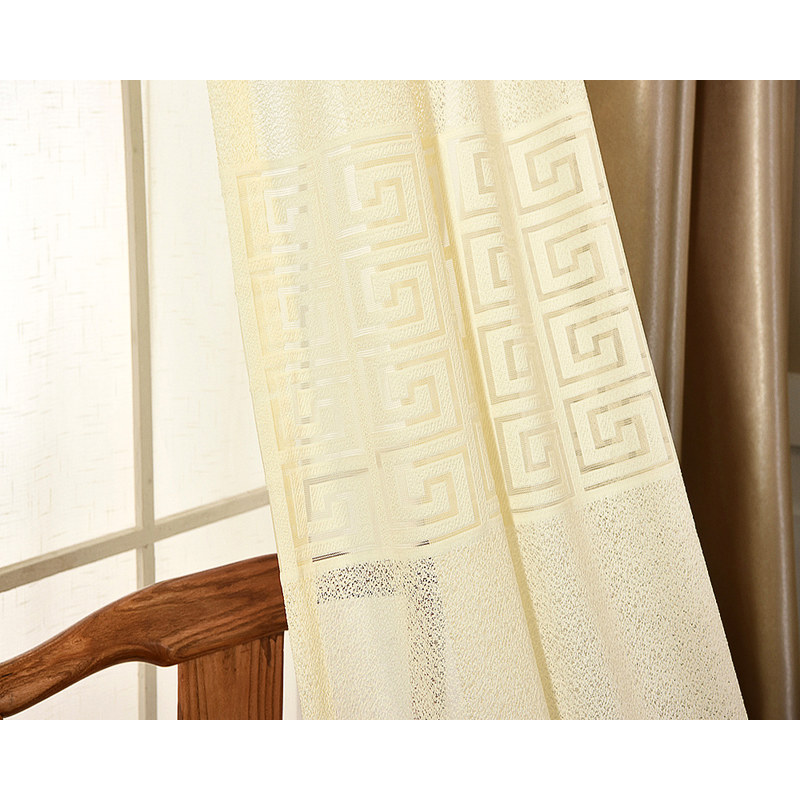 These 'Greek Key' jacquard light yellow heavy net curtains are made from a delightful, soft touch sheer fabric.