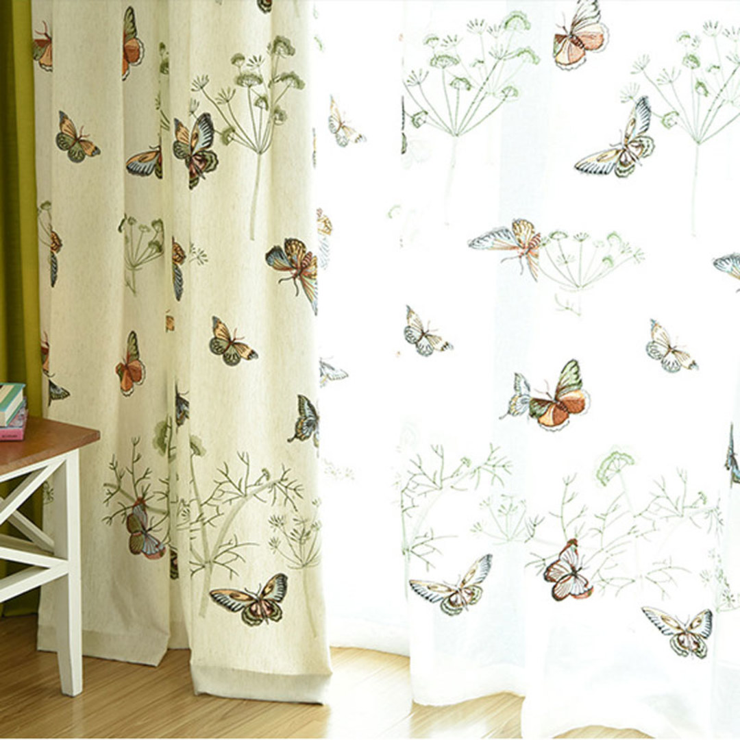 In a fluttering ballet of delicate grace, the Butterfly Garden floral embroidered voile curtain adorns your window like a living canvas. Each stitch whispers tales of vibrant blossoms and the gentle caress of butterfly wings, bringing the poetry of a garden into your home. As sunlight dances through its sheer fabric, it paints your room with a beautiful play of colors and shadows, creating a serene and natural atmosphere.