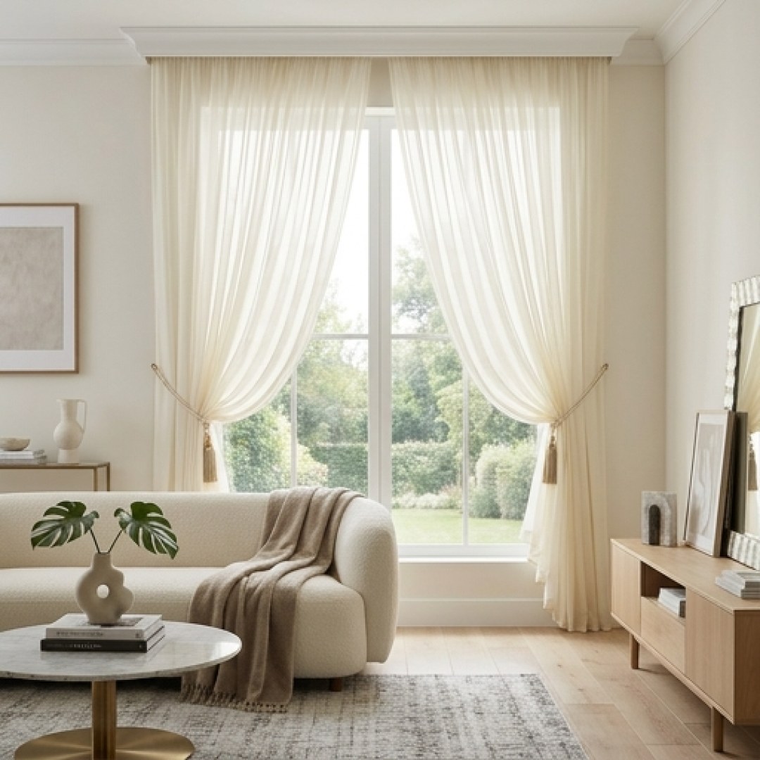 With a subtly textured weave and gentle satiny shimmer, these voile curtains add depth and sophistication to any space. Their rich texture and clean contemporary design make them versatile, softly filtering light while enhancing the elegance of your interiors.
