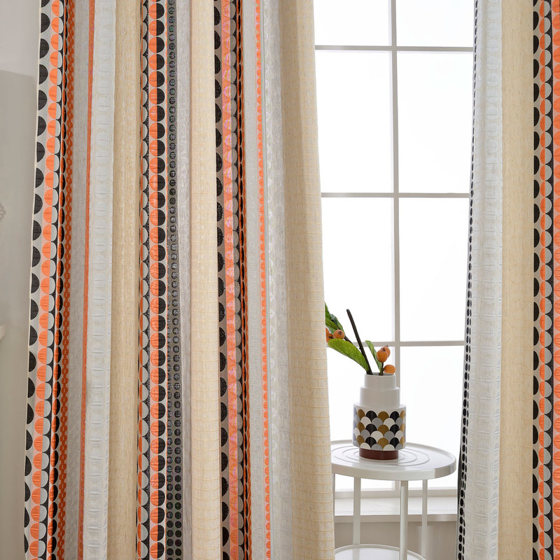 Add modern flair to your space with these contemporary curtains. Bold dotted patterns woven into textured 3D jacquard create a dynamic geometric rhythm, bringing energy and visual interest to any room while complementing eclectic and modern interiors.