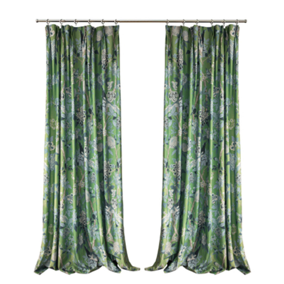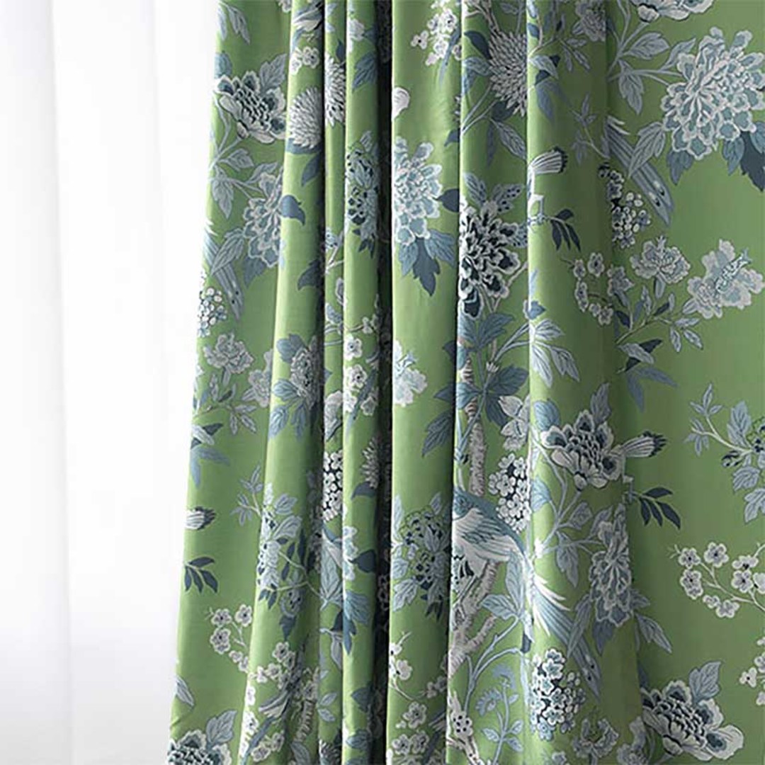 Birds & Blossoms Chinoiserie Blue & Green Floral Velvet Curtain