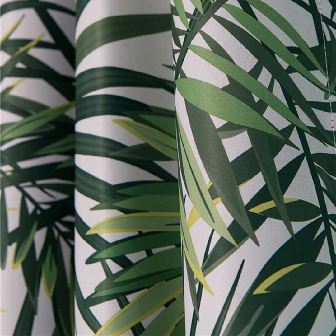 Paradise Palms tropical leaves green blackout curtain features a mesmerizing pattern of tropical leaves in varying shades of green, creating a lush and soothing ambience. The delicate detailing of each leaf adds a touch of sophistication, bringing a tropical paradise vibe to your living space.