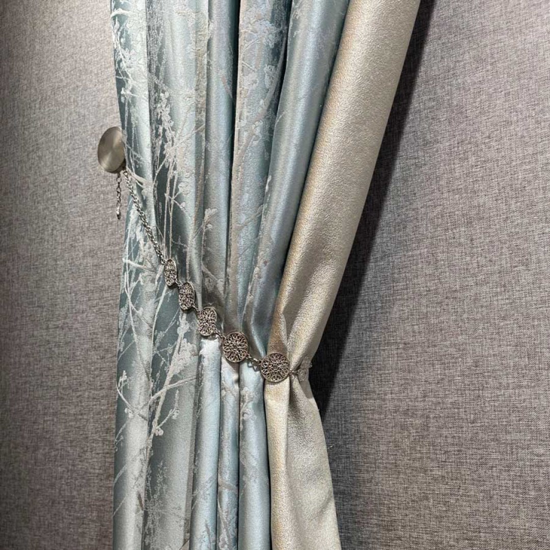 Blossom Branches Duck Egg Blue Abstract Floral Curtain