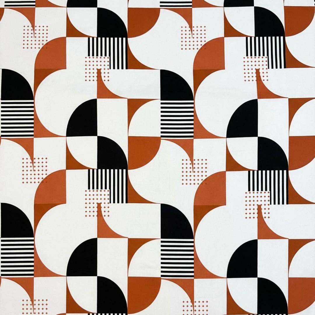Retro Rhythm Mid Century Modern Orange and Black Geometric Curtain