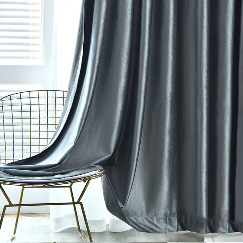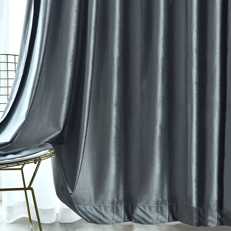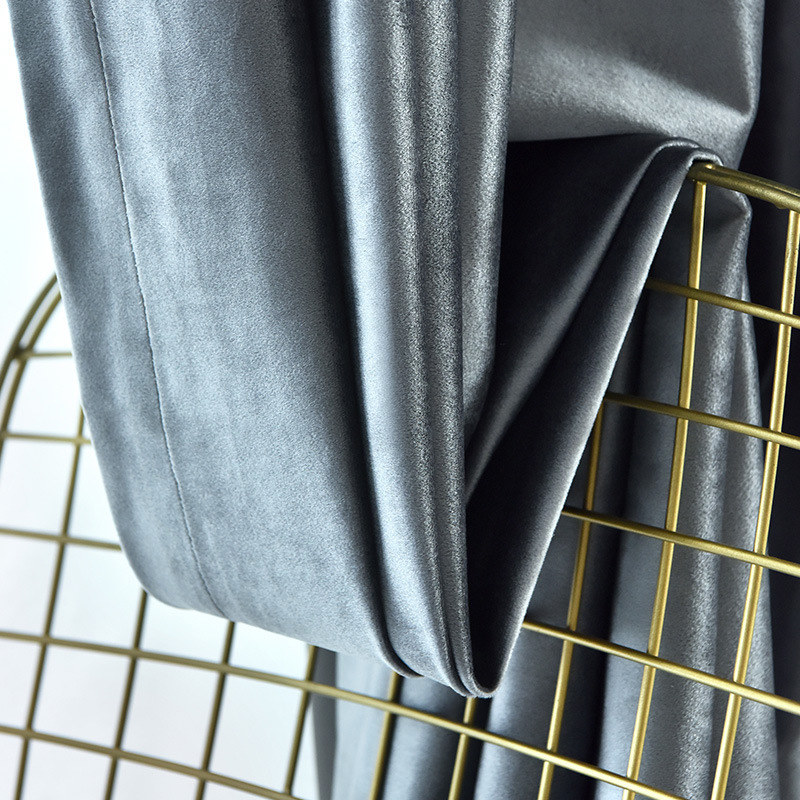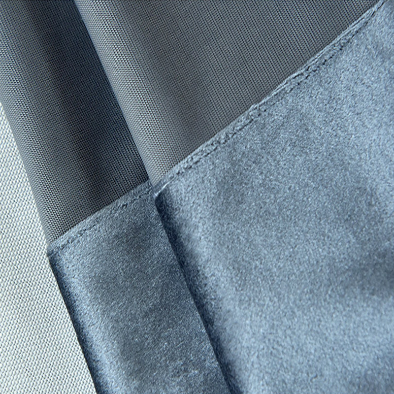 Diese eleganten metallischen Blackout-Vorhänge fangen das Licht perfekt ein. Die 90% Verdunkelungseigenschaften isolieren die Wärme in den kälteren Monaten. Der weiche Samt verleiht eine luxuriöse Textur und die metallischen Eigenschaften erzeugen einen faszinierenden blauen Schimmer bei unterschiedlicher Beleuchtung, der dem grauen Glanz eine völlig neue Dimension verleiht.