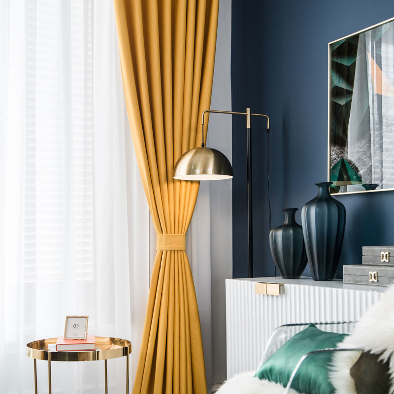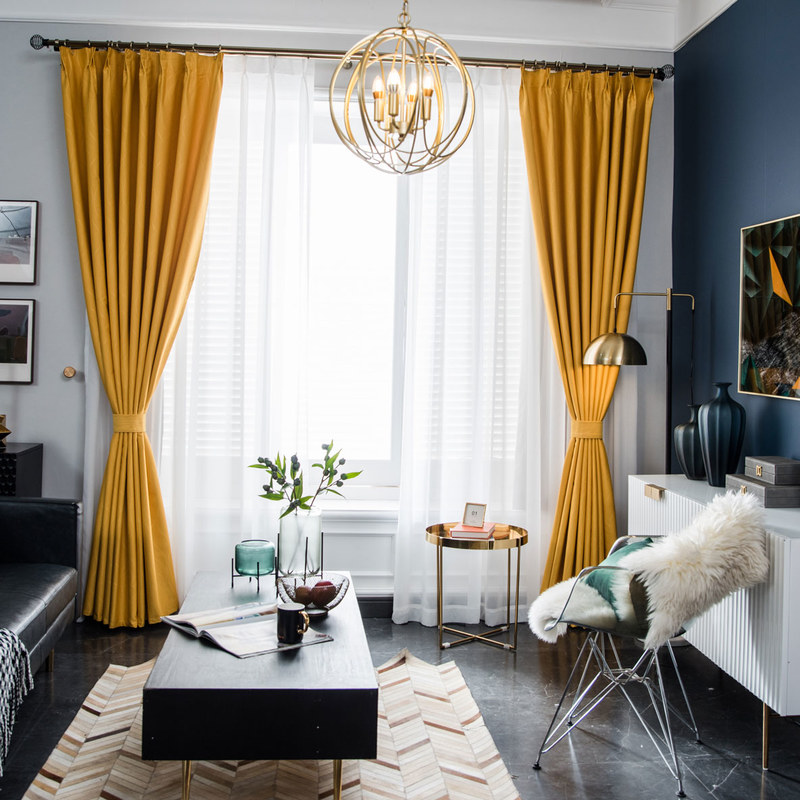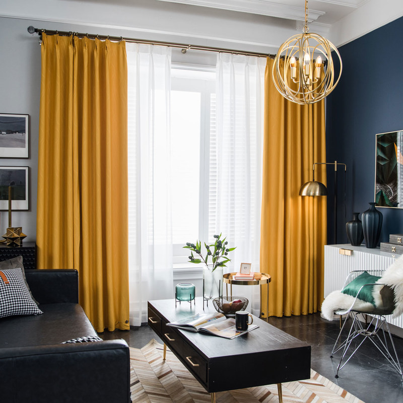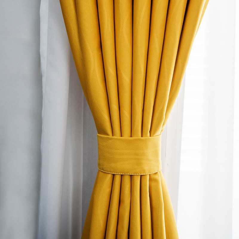 Gekräuselte Wellen Superdicker Zitronengelb Blickdichter Vorhang