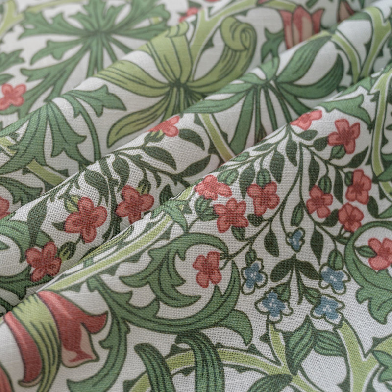 Inspiriert von der Arts and Crafts-Bewegung, zeigt dieser Stoff eine anmutige Anordnung blühender Blumen und rankender Blätter in einem weichen, symmetrischen Muster. Er erinnert an die Designs von William Morris und verleiht jedem Interieur zeitlose Eleganz und natürliche Schönheit. Unsere maßgefertigten Vorhänge werden sorgfältig nach Ihren individuellen Wünschen gefertigt. Sie sind in verschiedenen Kopfformen erhältlich, die Ihrem Geschmack entsprechen, darunter Schlingen, Ösen, Plissees, Wellenschlagfalten, umgekehrte Kastenfalten, Schlaufen, Rückenschlaufen, Tunnelzug und Wave-Vorhänge. Entdecken Sie, wie Blumenvorhänge jeden Raum verschönern können.