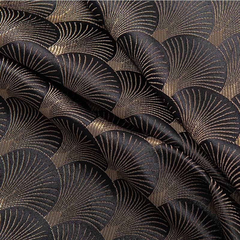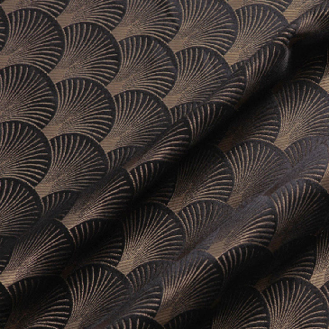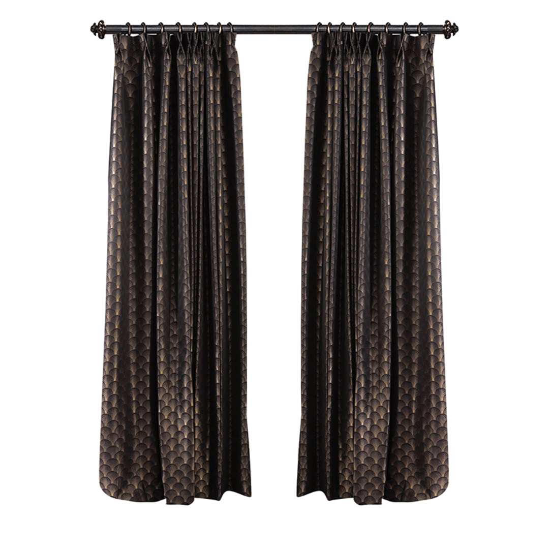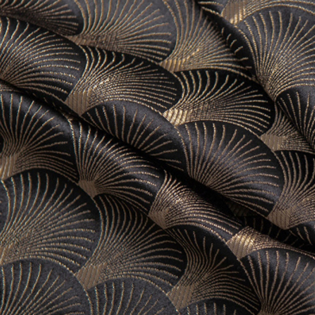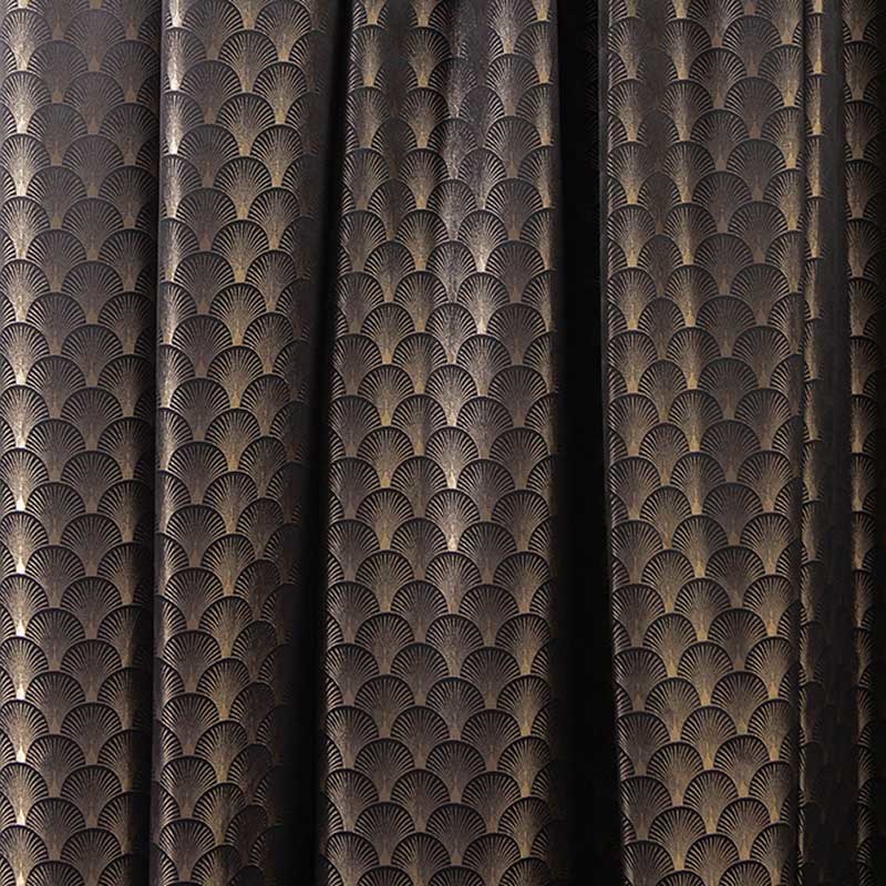 Diese klassischen Art-Déco Muschel gemusterte schwarzen und goldenen Vorhänge werden jeden Raum Ihrer Wahl ergänzen und als auffälliges Dekorationselement dienen.