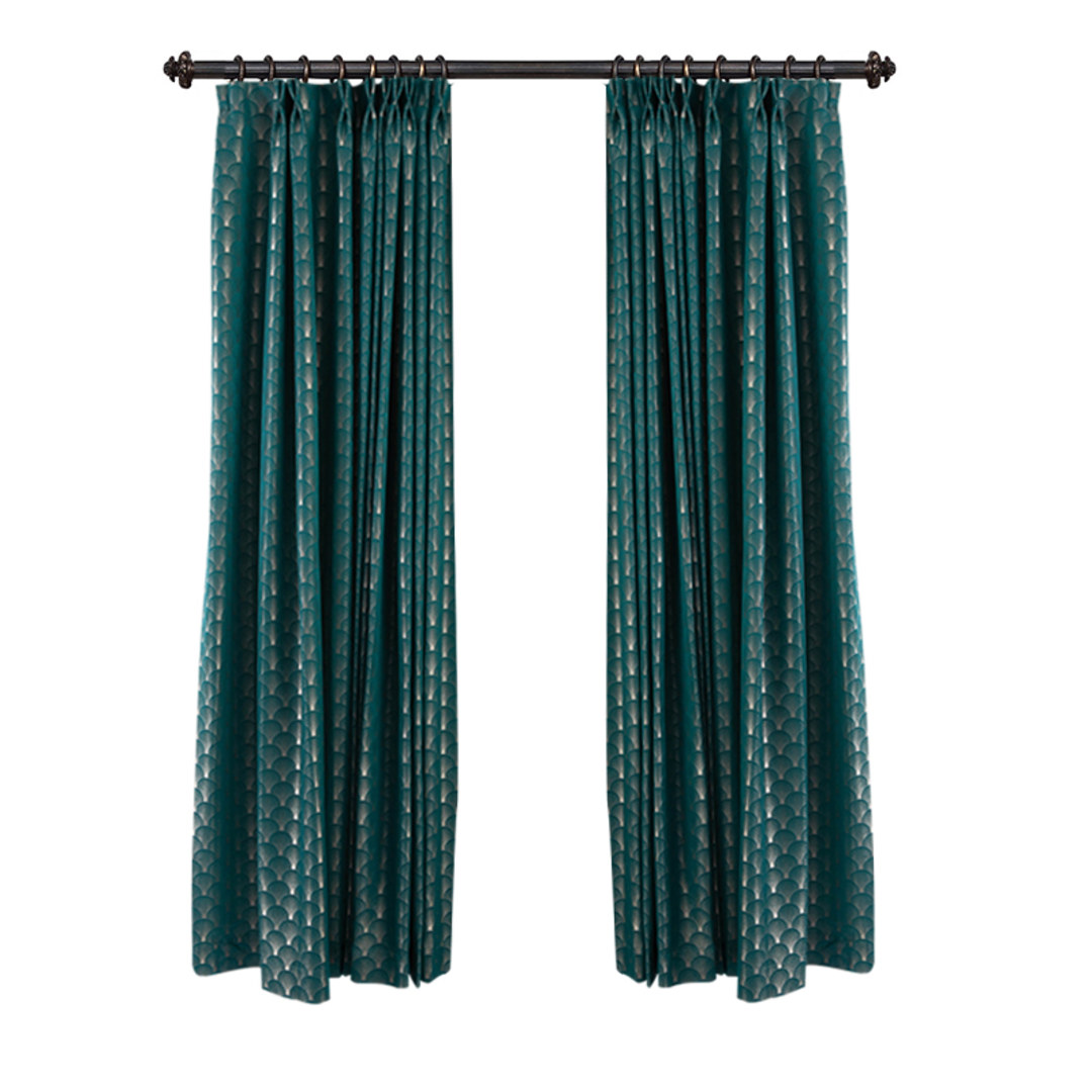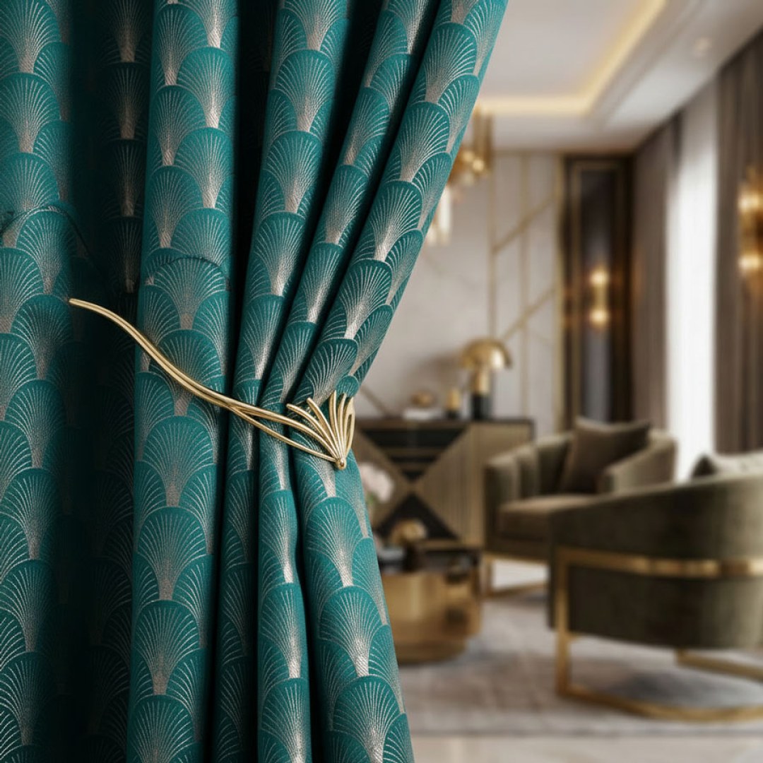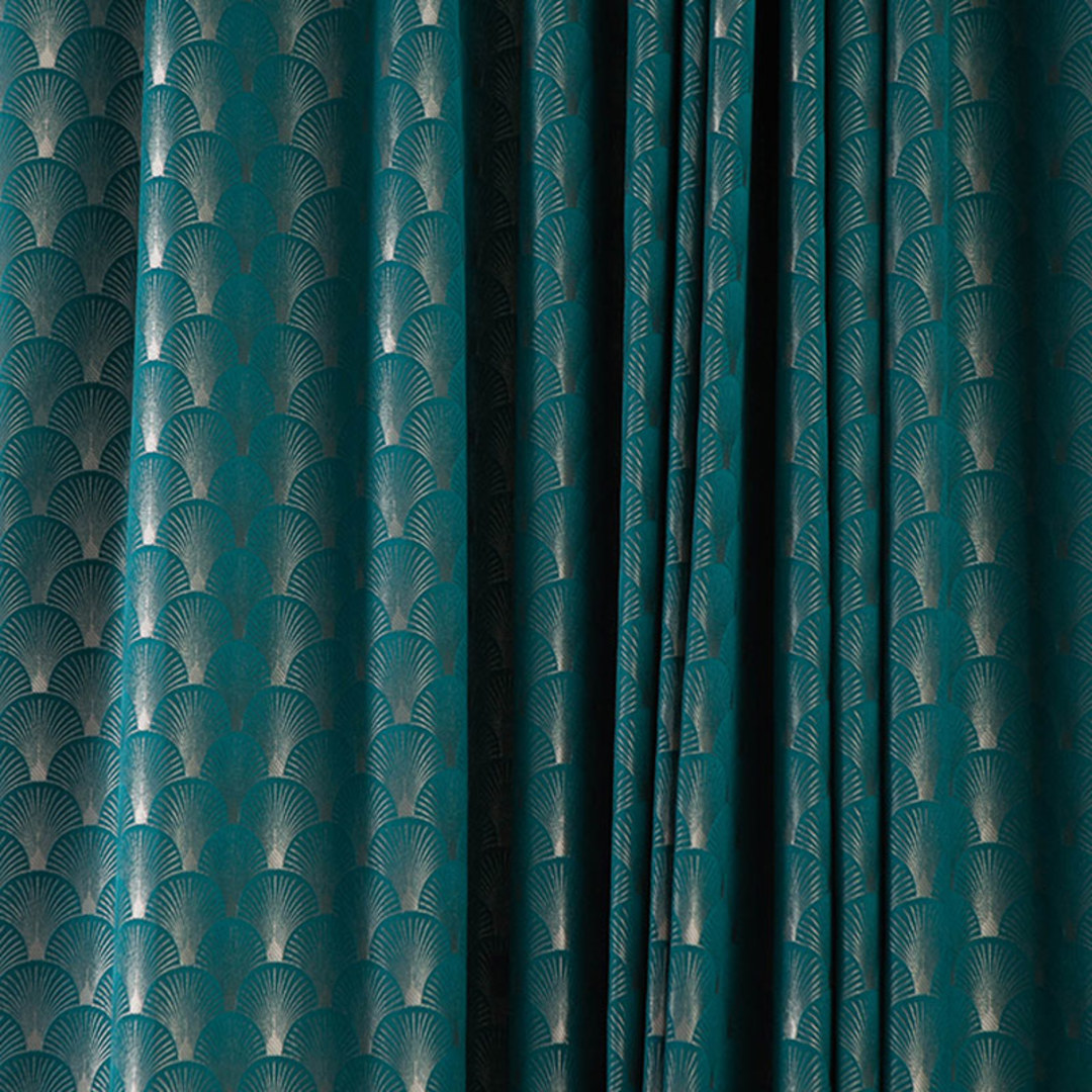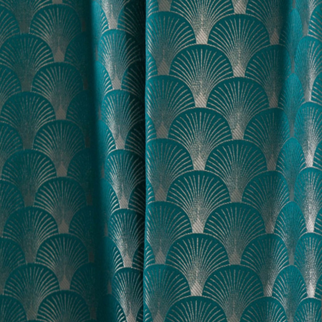Die Roaring Twenties Luxus Art-Deco Muschel-Muster Teal & Silber Geometrische Vorhänge