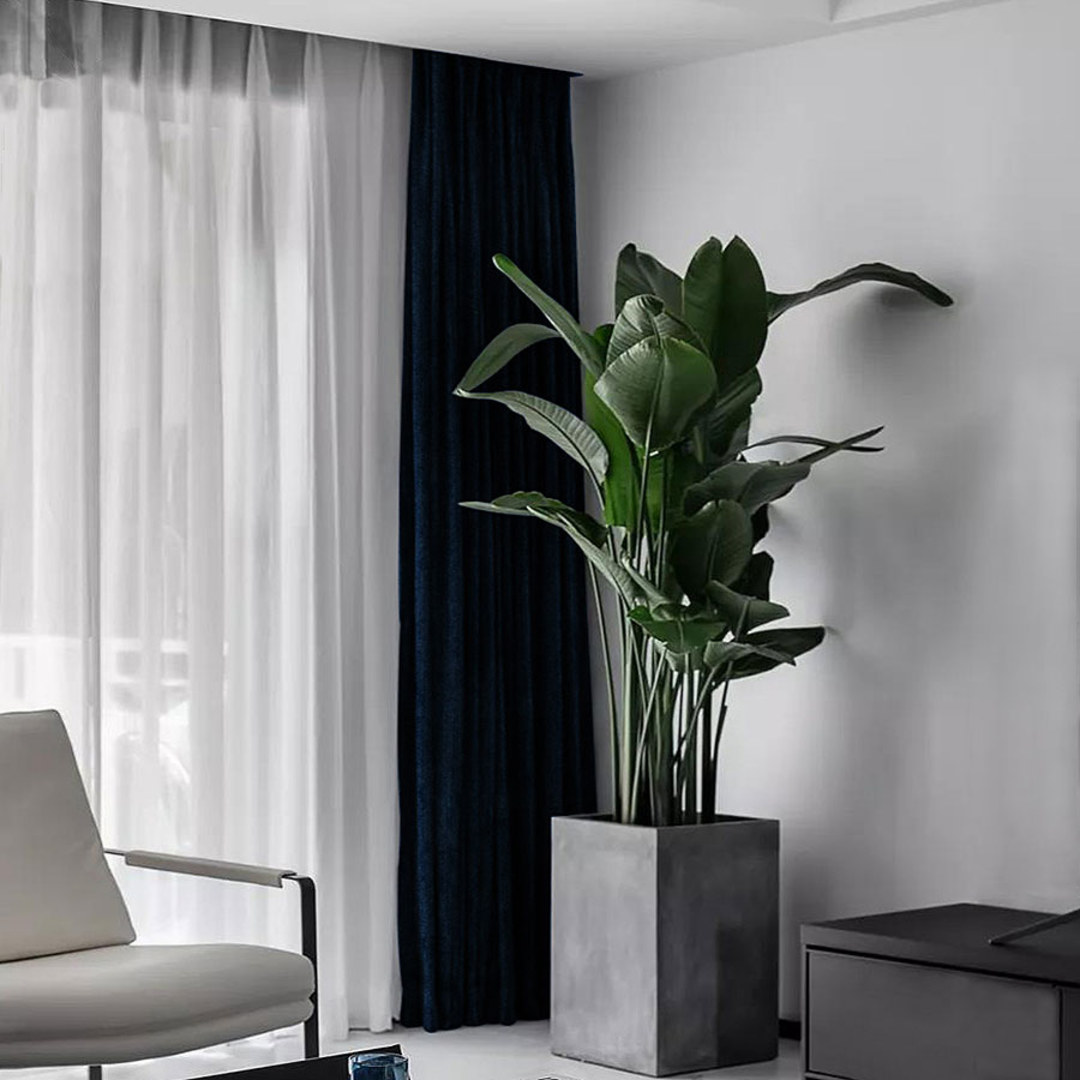Exquisite Matte schafft anspruchsvolle Wohnräume und ist eine effektive Möglichkeit, Eleganz und Textur in Ihr Zuhause zu bringen. Der wunderschön weiche, matte, marineblaue Chenille-Vorhang ist perfekt für luxuriöse Wohnzimmer und traumhafte Schlafzimmer. Chenille ist zudem strapazierfähiger als Samt, obwohl es sich um einen luxuriösen Stoff handelt. Die maßgefertigten Vorhänge werden genau nach Ihren Wünschen zugeschnitten und sind in einer großen Auswahl an Kopfformen erhältlich – Ösen, Schlaufen, Plisseekraft, Zwickfalten, Gezimmerte Falten, umgekehrte Falten, Stangentasche und Wellenvorhänge. Entdecken Sie, wie luxuriöse blaue Chenille-Vorhänge jeden Raum aufwerten können.