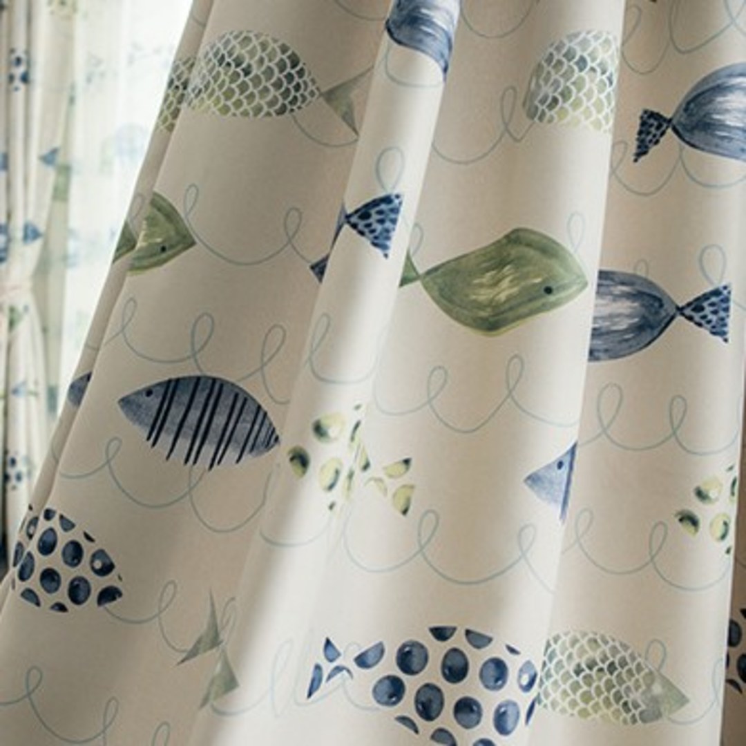 Erinnern Sie sich? Sie sagten, Sie wollten ein Zimmer mit Meerblick. Jetzt bekommen Sie den ganzen Ozean. Die strahlenden grün-blauen Fischdruckvorhänge verstärken eine erholsame Atmosphäre. Unsere maßgefertigten Vorhänge können exakt auf Ihre Fensteranforderungen zugeschnitten werden und sind in verschiedenen Falten erhältlich, darunter Schlingen, Doppelstich, Dreifachstich, Ösen, Schlaufen, Stangentasche und Wellenvorhänge. Bestellen Sie passende Gardinen, Raffbänder und Kissen, um das gesamte Raumambiente zu verbessern. Entdecken Sie, wie Tiervorhänge jeden Raum aufwerten können.