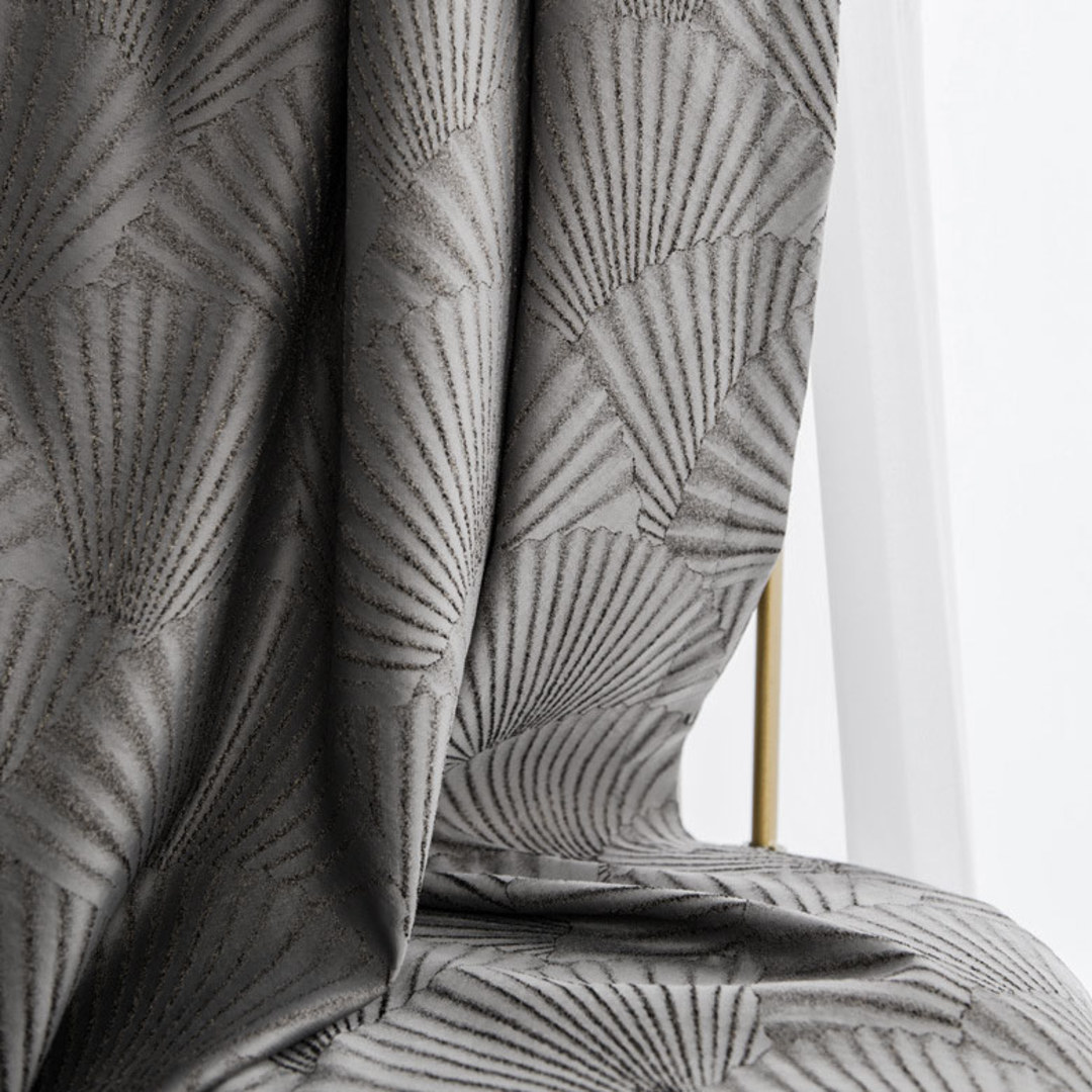 Erhalten Sie einen luxuriösen, modernen und anspruchsvollen Look mit diesen Art-Deco-grauen orientalischen Fächer-Mustermotiven. Unsere maßgefertigten Vorhänge werden sorgfältig nach Ihren spezifischen Wünschen gefertigt. Sie sind in einer Vielzahl von Aufhängungsarten erhältlich, die Ihrem Geschmack entsprechen, darunter Schlingen, Ösen, Zwickfalten, Maßfalten, umgekehrte Kastenfalten, Schlaufen, Rückenschlaufen, Schlauchtasche und Wellenvorhänge. Art-Deco-Vorhänge - die einfache Möglichkeit, Glamour und Luxus in Ihr Zuhause zu bringen.