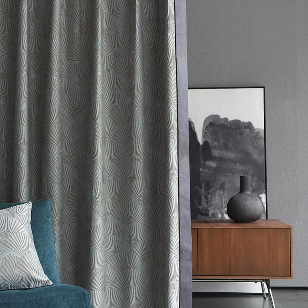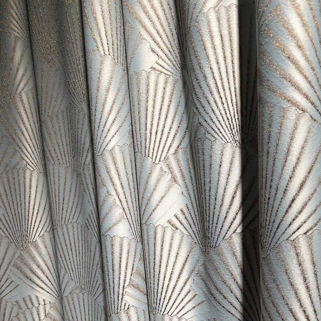 Erhalten Sie einen luxuriösen, modernen und anspruchsvollen Look mit diesen Art-Déco-Curtains in Enteneigelblau mit orientalischem Fächermuster. Unsere maßgefertigten Vorhänge werden genau nach Ihren Wünschen zugeschnitten und sind in verschiedenen Aufhängungsarten erhältlich – Ösen, Schlaufen, Plisseekraftband, Zwickfalten, Maßplissees, umgekehrte Plissees, Stangentasche und Wellenstore. Bestellen Sie passende Gardinenbänder und Kissen, um das gesamte Raumambiente zu unterstreichen. Art-Déco-Vorhangideen – die einfachen Möglichkeiten, Ihrem Zuhause Glamour und Luxus zu verleihen.