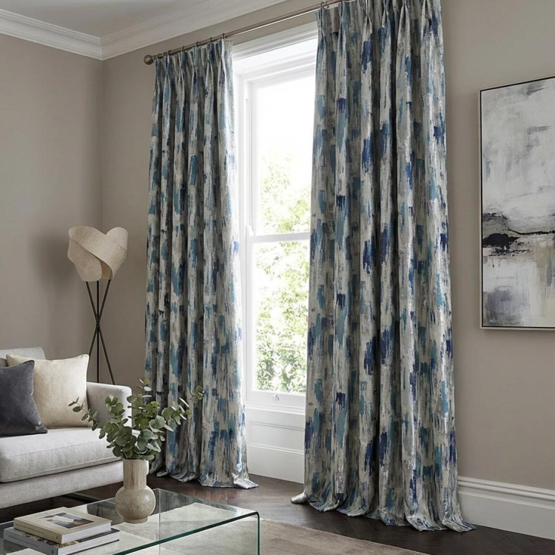 Erneuern Sie Ihre Wohnraumgestaltung mit künstlerischem Flair. Die luxuriösen Jacquard-Vorhänge in Tealblau mit impressionistischen Pinselstrichen bringen Energie und Farbe in Ihren Raum. Die wunderschönen silbernen Details sind schlicht glamourös und verleihen Ihrem Interieur etwas Glanz. Definitiv ein schöner Vorhang für Kunstliebhaber. Unsere maßgefertigten Vorhänge werden sorgfältig nach Ihren spezifischen Wünschen gefertigt. Sie sind in einer Vielzahl von Kopfformen erhältlich, die Ihrem Geschmack entsprechen, darunter Schlitze, Ösen, Zwickfalten, Maßfalten, umgekehrte Kastenfalten, Schlaufen, Rückenschlaufen, Stangentasche und Wellenvorhänge. Entdecken Sie, wie abstrakte Vorhänge jeden Raum aufwerten können.