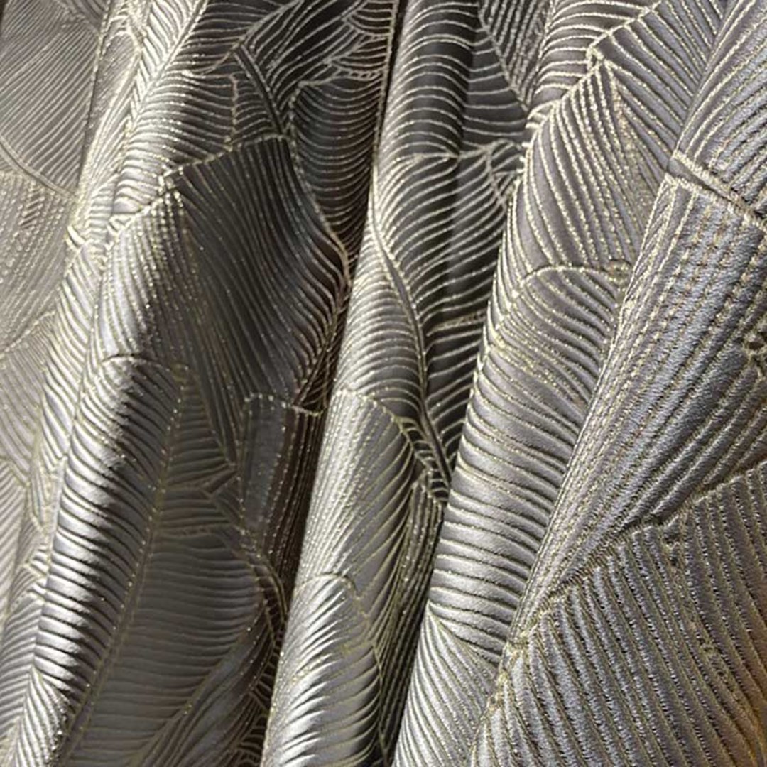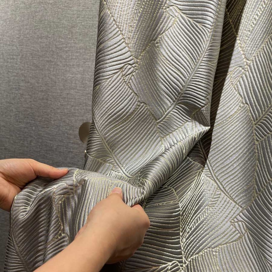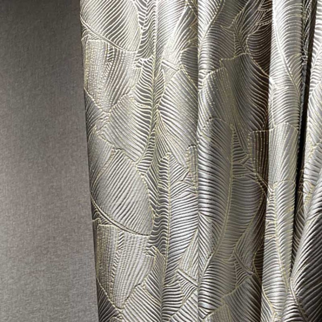 Betreten Sie tropische Glückseligkeit mit diesen atemberaubenden 3D Jacquard Bananenblatt Vorhängen. Die goldenen Details erzeugen ein Lichtfangendes Schimmern, das Ihrem Interieur die perfekte Note verleiht. Unsere maßgefertigten Vorhänge werden sorgfältig nach Ihren spezifischen Wünschen gefertigt. Sie sind in einer Vielzahl von Aufhängungsarten erhältlich, die Ihrem Geschmack entsprechen, darunter Schlaufenschlauch, Ösen, Zwickfalten, Maßfalten, umgekehrte Kastenfalten, Schlaufen, Rückenschlaufen, Stangentasche und Wellenvorhänge. Entdecken Sie, wie tropische Vorhänge jeden Raum aufwerten können.