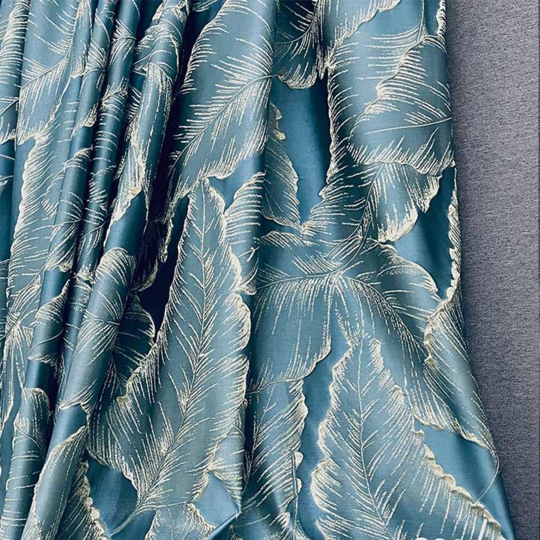 Verleihen Sie Ihrem Raum mit diesen luxuriösen 3D-Jacquard-Tropenblatt-Vorhängen in Marineblau Fülle und Energie. Die wunderschönen goldenen Details sind schlicht glamourös und verleihen Ihrem Interieur etwas Glanz. Unsere maßgefertigten Vorhänge werden sorgfältig nach Ihren spezifischen Wünschen gefertigt. Sie sind in einer Vielzahl von Kopfformen erhältlich, die Ihrem Geschmack entsprechen, darunter Schlitze, Ösen, Zwickfalten, Maßfalten, umgekehrte Kastenfalten, Schlaufen, Rückenschlaufen, Stangentasche und Wellenvorhänge. Bestellen Sie passende Gardinen, Raffbänder und Kissen, um das gesamte Raumambiente zu verbessern. Entdecken Sie, wie Tropen-Vorhänge jeden Raum aufwerten können.