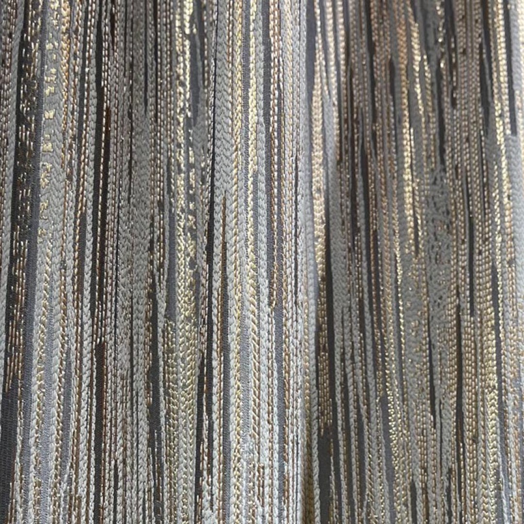 Veredeln Sie Ihren Raum mit dem exquisiten Stoff „Gilded Stripes“. Dieser anspruchsvolle Stoff präsentiert schimmernde goldene Streifen vor einem weichen, dezenten grauen Hintergrund und erzeugt einen faszinierenden visuellen Effekt. Der luxuriöse Glanz der goldenen Akzente verleiht eine Aura von Eleganz und Raffinesse.