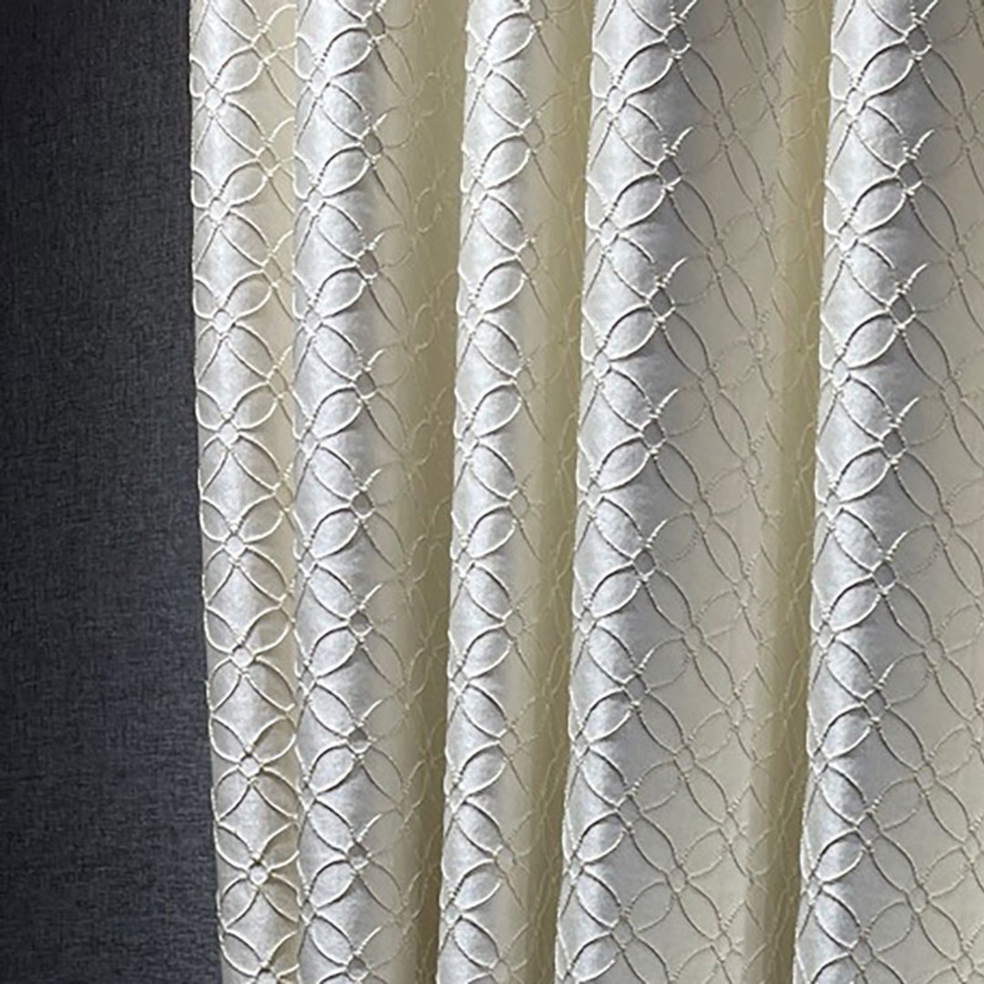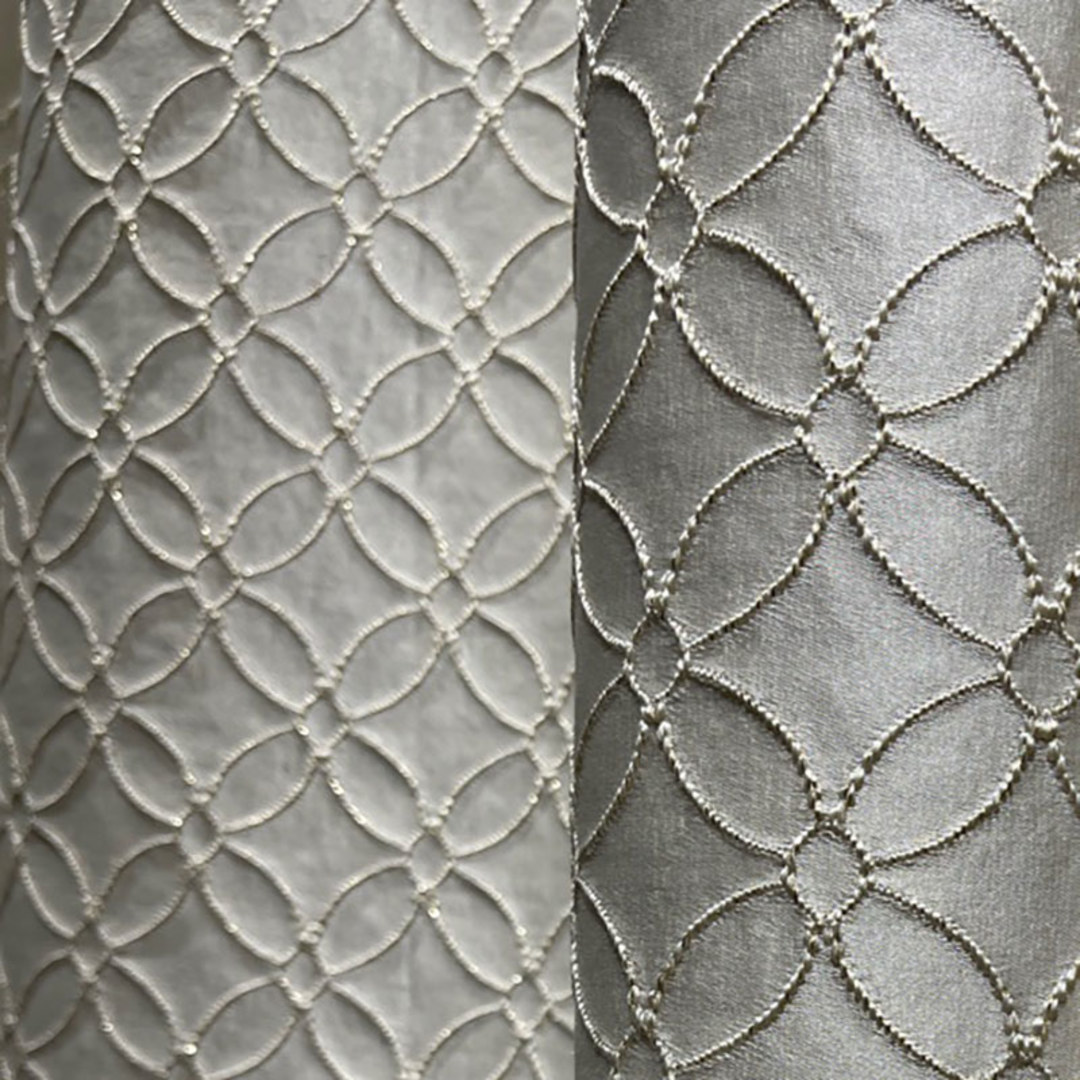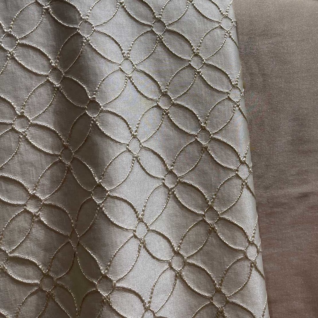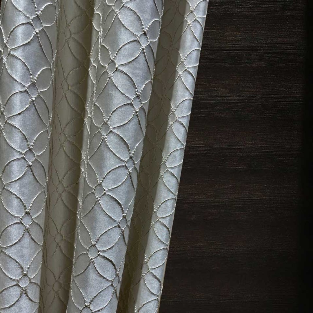 Belle Fleur fängt zeitlose Eleganz durch ein zartes Gitter aus bestickten Blütenbögen ein. Das kreisförmige Motiv, das an blühende Blütenblätter erinnert, verleiht jedem Raum Tiefe und Raffinesse. Subtile metallische Fäden in Gold verleihen einen anmutigen Schimmer und bereichern das Design mit einem raffinierten Hauch von Luxus. Unsere maßgefertigten Vorhänge werden sorgfältig nach Ihren individuellen Wünschen gefertigt. Sie sind in einer Vielzahl von Kopfbändern erhältlich, die Ihrem Geschmack entsprechen, darunter Schlingen, Ösen, Plissees, maßgefertigte Plissees, umgekehrte Kastenfaltung, Schlaufenaufhängung, Rückenschlaufen, Stangentasche, Wellen und Türvorhänge. Entdecken Sie, wie Arabesque Vorhänge jeden Raum erneuern können.