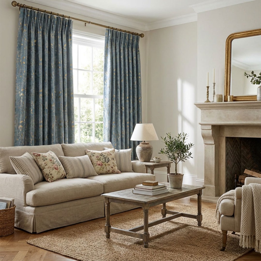 Elegantes, von der Natur inspiriertes Design mit goldenem Akzent. Anmutige Äste und schimmernde, metallisch goldene Blätter sind in einen strukturierten Jacquard gewebt und schaffen ein raffiniertes, leuchtendes Statement für jedes Interieur.Unsere maßgefertigten Vorhänge werden sorgfältig nach Ihren spezifischen Wünschen gefertigt. Sie sind in einer Vielzahl von Aufhängungsarten erhältlich, die Ihrem Geschmack entsprechen, darunter Schlaufenschlauch, Ösen, Zwickfalten, Wellenschlauch, umgekehrte Kastenplisse, Schlaufen, Rückenschlaufen, Stangentasche und Moltonplisse.Entdecken Sie, wie Blumenmuster-Vorhänge jeden Raum aufwerten können.