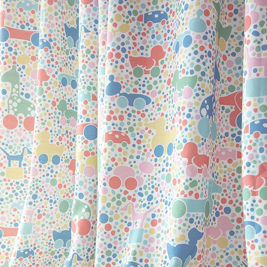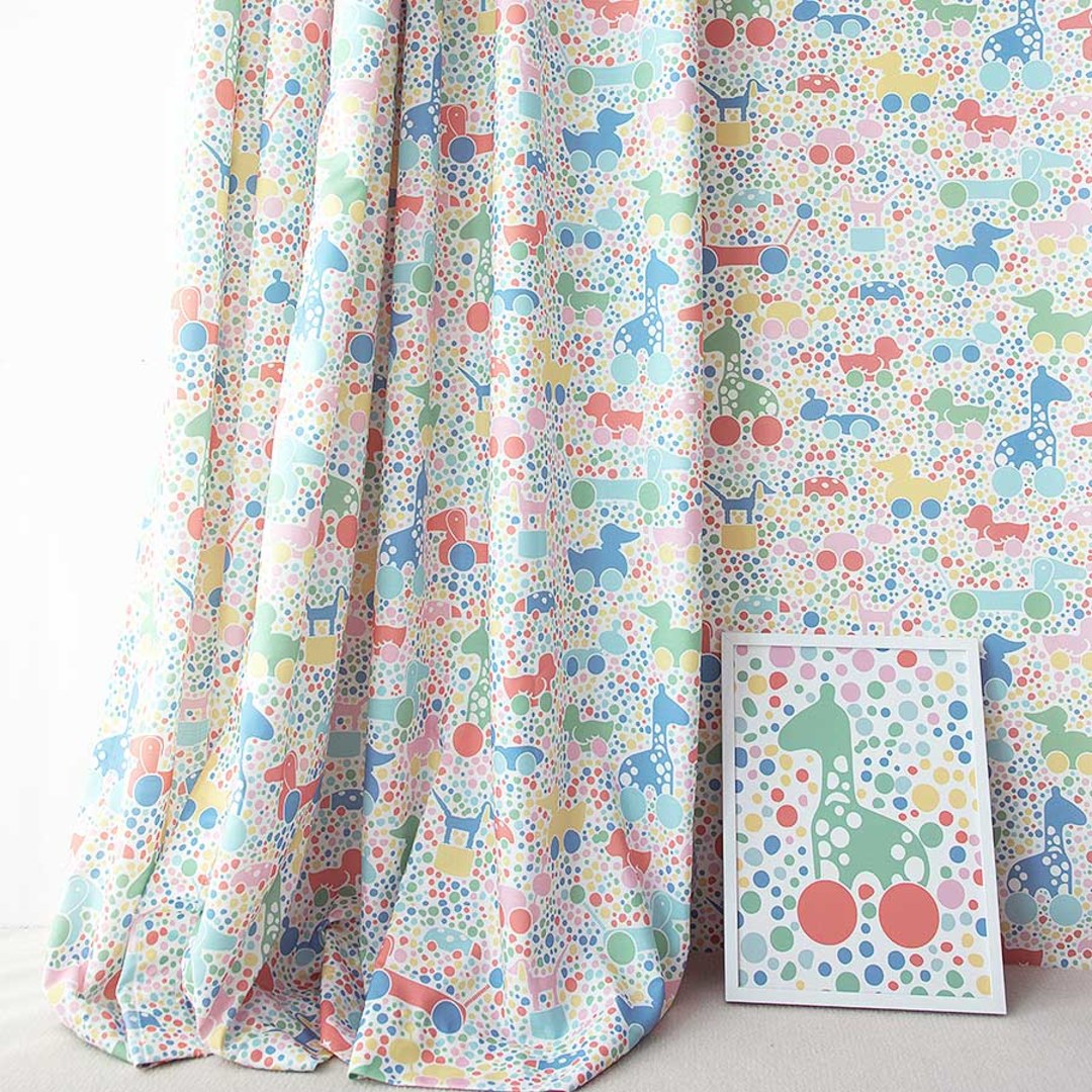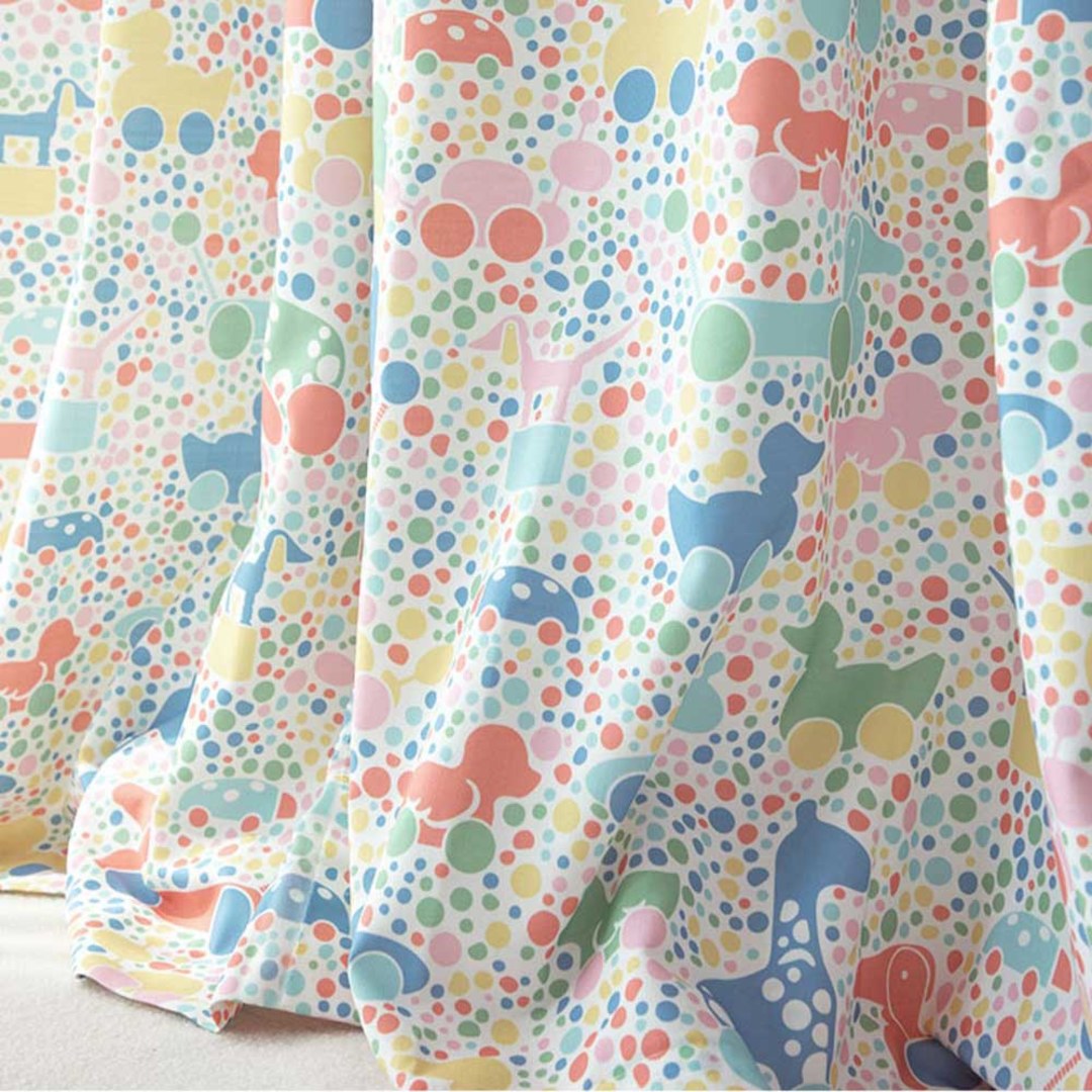 Begleiten Sie Hunde, Enten, Giraffen und Schildkröten beim Spaß im Hüpfhaus! Diese farbenfrohen und verspielten gepunkteten Tiermuster-Vorhänge sind die perfekte Ergänzung für das Kinderzimmer oder Spielzimmer! Unsere maßgefertigten Vorhänge werden nach Ihren genauen Anforderungen gefertigt und sind in verschiedenen Aufhängungsarten erhältlich – Ösen, Schlaufen, Falten, Doppelstich, Kräuselband oder Wellenvorhänge. Bestellen Sie passende Gardinenbänder und Kissen, um die gesamte Raumgestaltung zu unterstreichen. Entdecken Sie weitere unserer lustigen Kinderzimmer-Vorhänge.