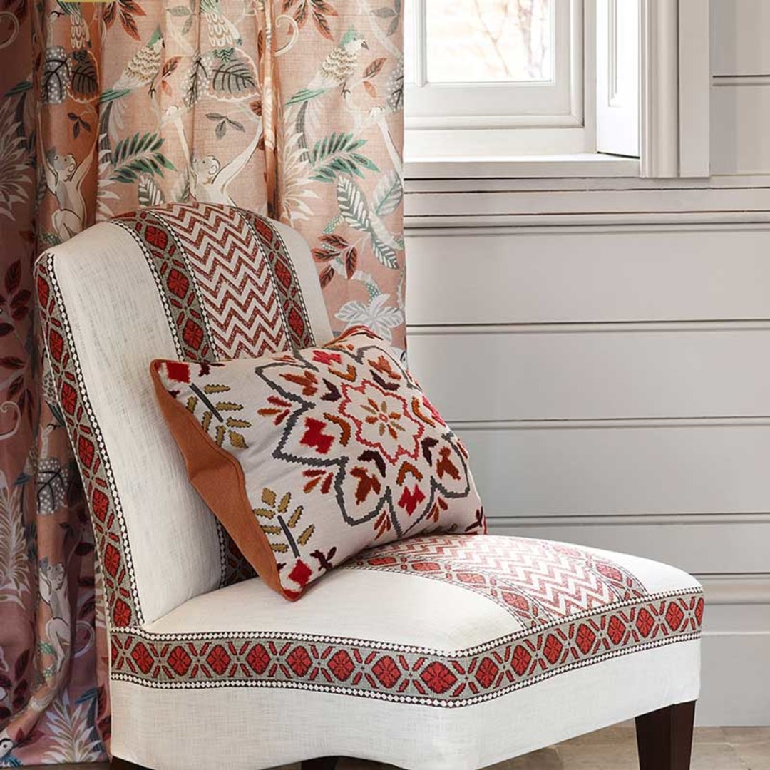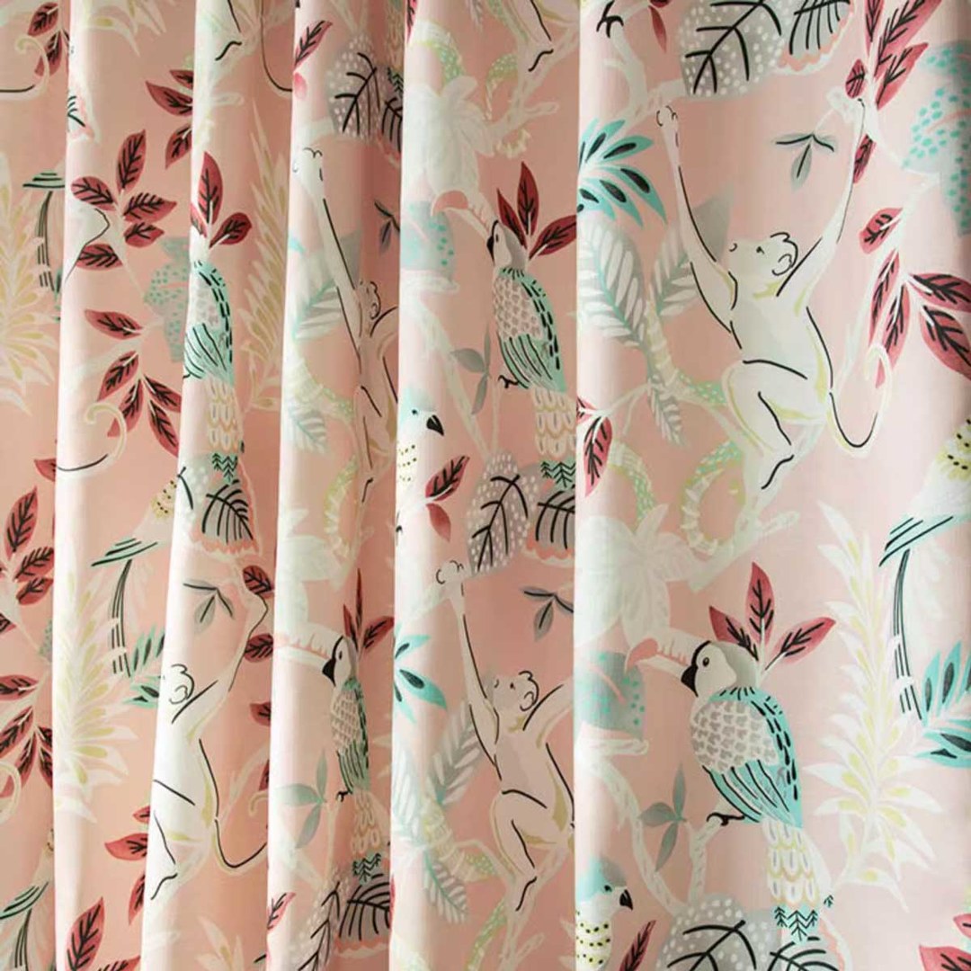 Treten Sie ein in den Dschungel, wo Affen und Papageien miteinander verkehren! Bringen Sie eine verspielte Note in Ihren Raum mit diesem entzückenden floralen Samtvorhang. Diese Dschungeltier-Vorhänge versprechen, Ihrem Wohndekor Spaß und Energie zu verleihen. Unsere maßgefertigten Samtvorhänge werden sorgfältig nach Ihren spezifischen Wünschen gefertigt. Sie sind in einer Vielzahl von Aufhängungsarten erhältlich, die Ihrem Geschmack entsprechen, darunter Schlaufenschlauch, Ösen, Zwickfalten, Maßfalten, umgekehrte Kastenfalten, Schlaufen, Rückenschlaufen, Stangentasche und Wellenvorhang.Entdecken Sie weitere exquisite florale Samtvorhänge.