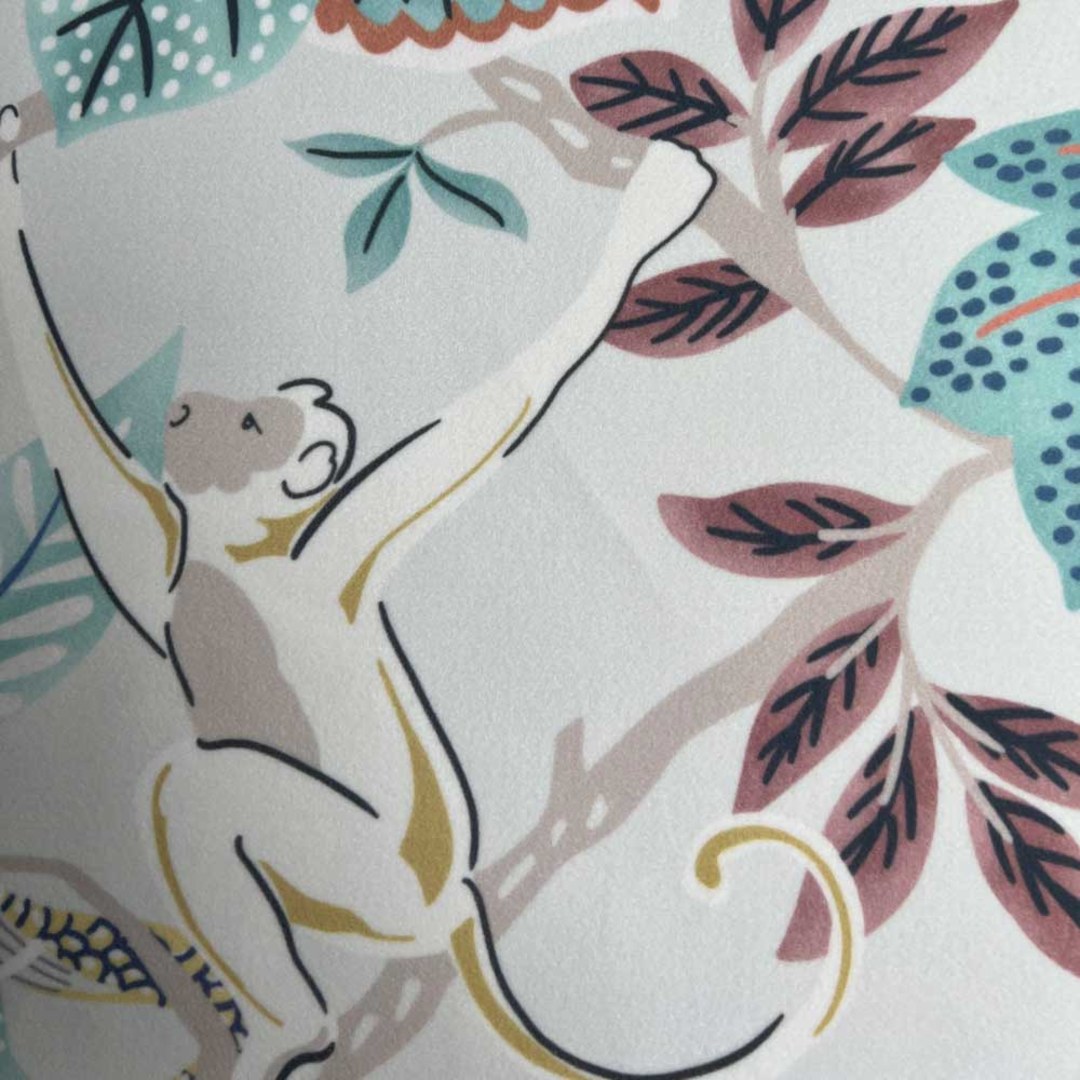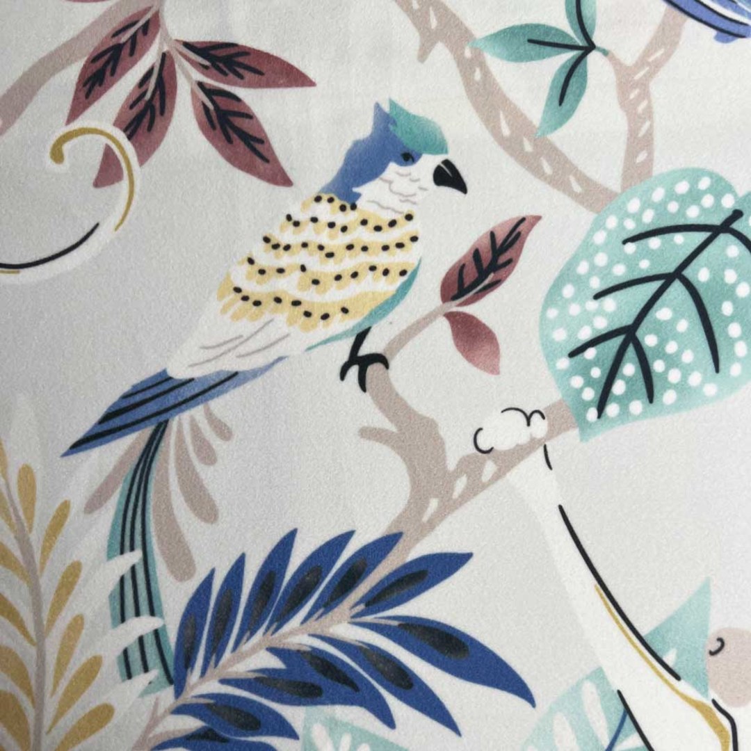 Dschungel Mingle Affe und Papagei Pastellgrüne florale Samtvorhänge
