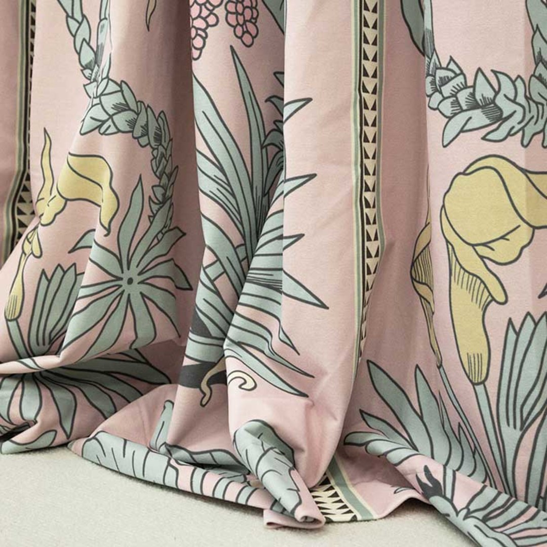 Inspiriert von den kunstvollen Doom-Fliesen des Natural History Museum in London, zeigt dieses Retro-Muster exotische Pflanzen aus aller Welt zur Zeit der Entdeckungen. Das florale Motiv, das mit stilvollen Streifen versehen ist, verleiht dem Design ein traditionelleres Aussehen. Unsere maßgefertigten Samtvorhänge werden sorgfältig nach Ihren spezifischen Wünschen gefertigt. Sie sind in einer Vielzahl von Kopfformen erhältlich, die Ihrem Geschmack entsprechen, darunter Schlingen, Ösen, Zwickfalten, Maßfalten, umgekehrte Kastenfalten, Schlaufen, Rückenschlaufen, Stangentasche und Wellenvorhänge. Entdecken Sie weitere exquisite florale Samtvorhänge.