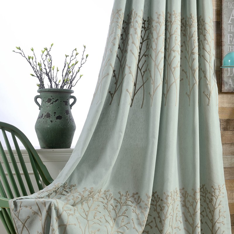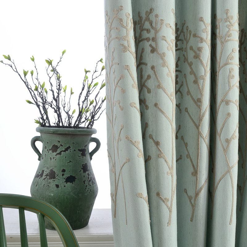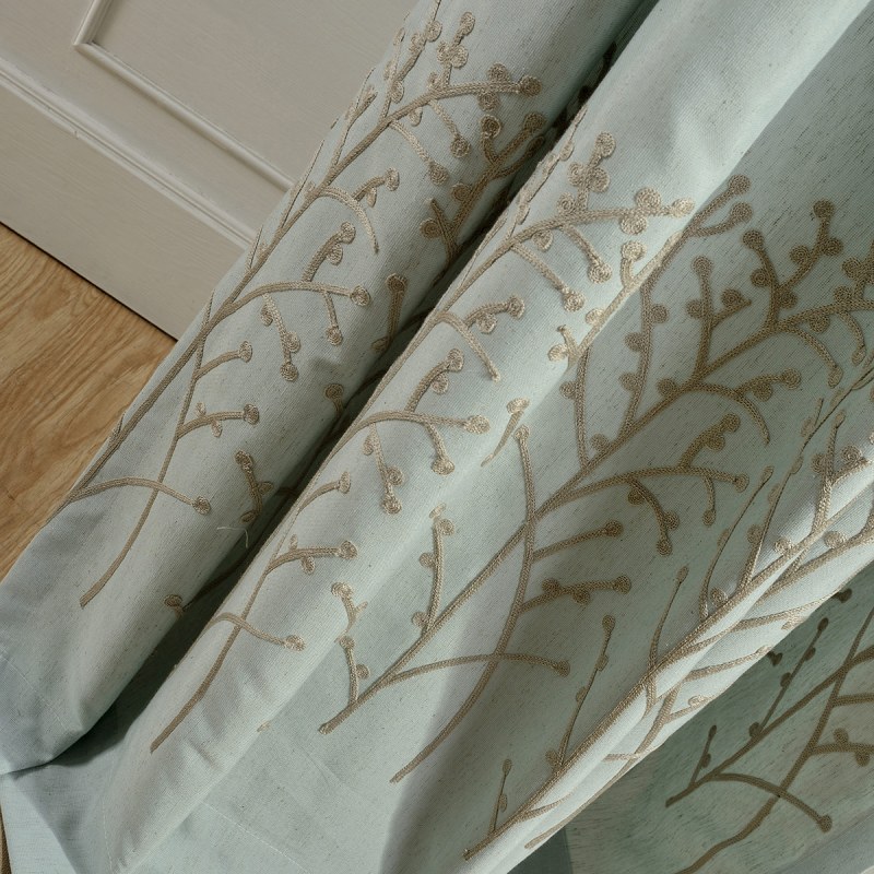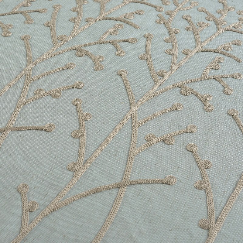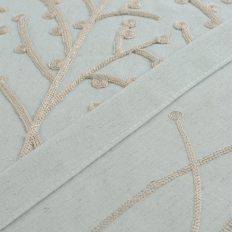 Die kontrastierenden Farben von Pastell-Türkis und Hellbraun bringen ein ganzjähriges florales Flair an jedes Fenster und sind aus modernem Leinenstoff mit bestickten Akzenten gefertigt.
