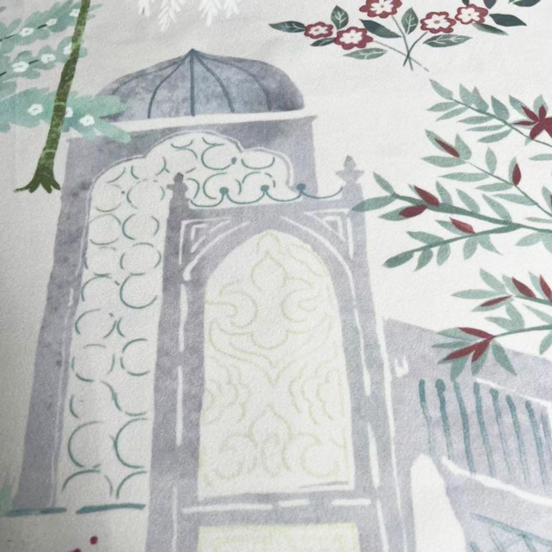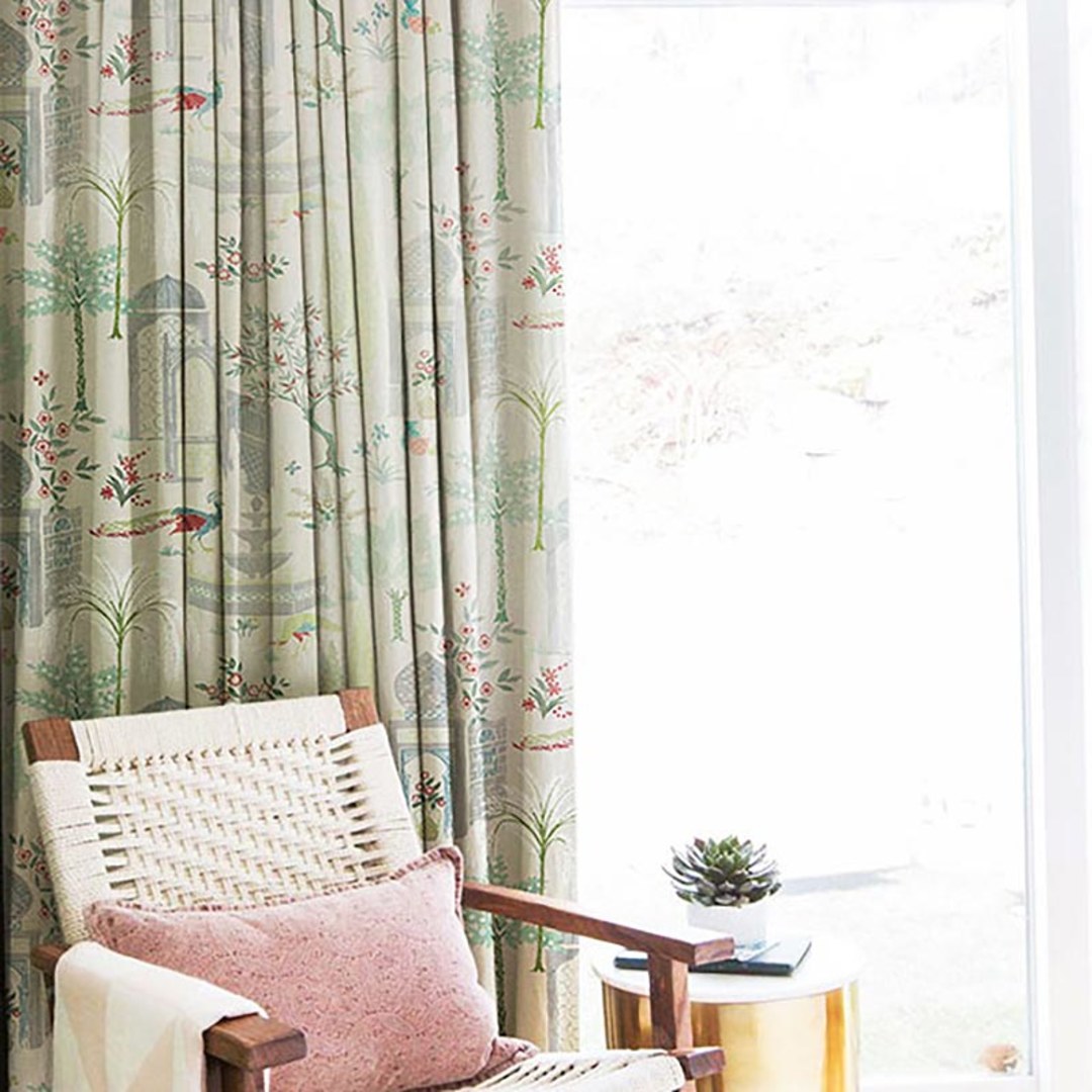 Inspiriert von einem exquisiten persischen Garten, zeigt dieses handbemaltes Muster klassische persische Architekturen, Brunnen, exotische Bäume, Blumen und Pfauen auf weichem und seidigem Samt. Unsere maßgefertigten Vorhänge werden sorgfältig nach Ihren spezifischen Wünschen gefertigt. Sie sind in einer Vielzahl von Aufhängungsarten erhältlich, die Ihrem Geschmack entsprechen, darunter Schlingen, Ösen, Zwickfalten, Wellenschlagfalten, umgekehrte Kastenfalten, Schlaufen, Rückenschlaufen, Schlauchtasche und Wave-Vorhang. Bestellen Sie passende Gardinenbänder und Kissen, um das gesamte Raumambiente zu unterstreichen. Entdecken Sie weitere exquisite florale Samtvorhänge.