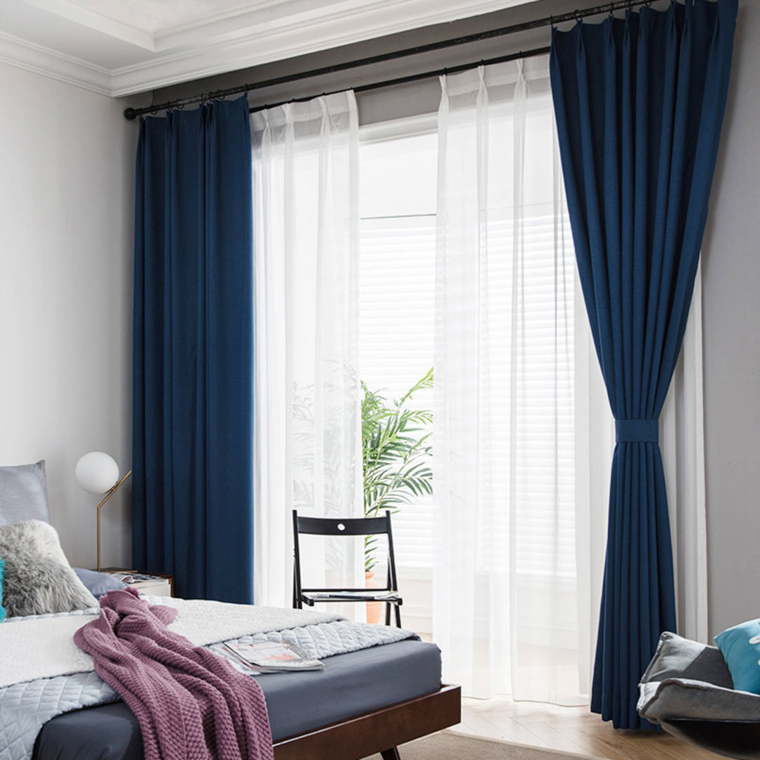 Dieser weiche Stoff ist ein Verdunkelungsmaterial und bietet einen Verdunkelungseffekt von 85% bis 95%, ohne eine zweite Schicht zu benötigen. Je dunkler die Farbe, die Sie wählen, desto besser der Verdunkelungseffekt, den Sie erzielen können.