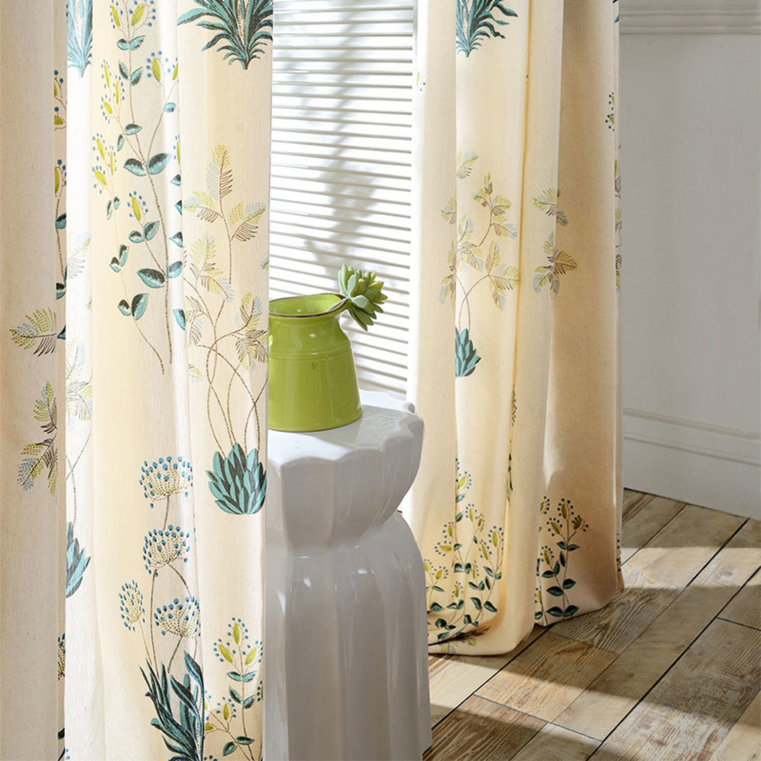 Erfrischen Sie Ihre Wohnraumgestaltung mit modernem Türkisgrün und cremefarbenem Blumendesign. Unsere maßgefertigten Vorhänge werden genau auf Ihre Anforderungen zugeschnitten und sind in verschiedenen Aufhängungsarten erhältlich – Ösen, Schlaufen, Faltenband, Maßgefertigte Falten, Kringelfalten, umgekehrte Kringelfalten, Stangentasche und Wellenvorhänge. Bestellen Sie passende Gardinenbänder und Kissen, um die gesamte Raumgestaltung zu verbessern.Entdecken Sie, wie Blumenvorhänge jeden Raum aufwerten können.