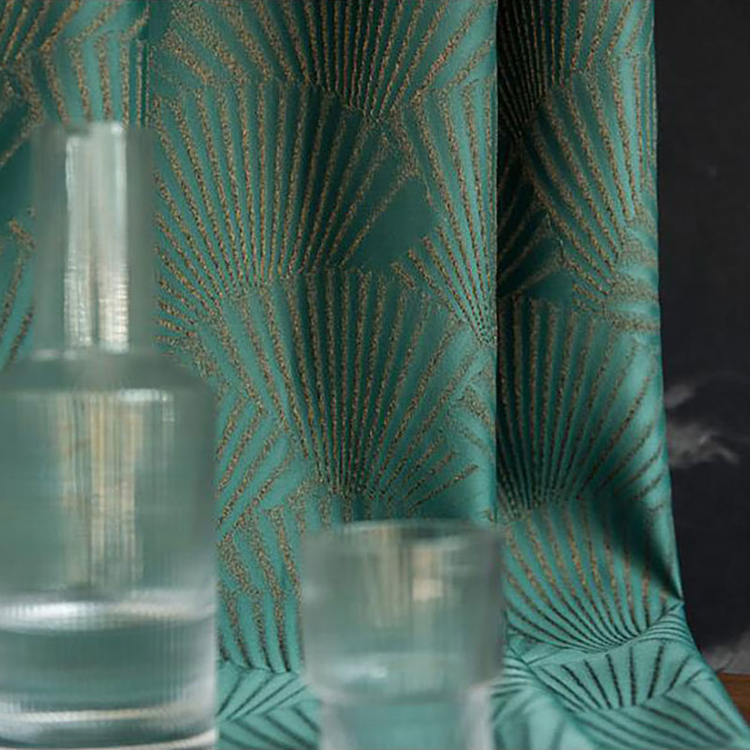 Erhalten Sie einen luxuriösen, modernen und anspruchsvollen Look mit diesen Art-Déco-grünen Orientfächer-Mustercourtains. Unsere maßgefertigten Vorhänge werden sorgfältig nach Ihren spezifischen Wünschen gefertigt. Sie sind in einer Vielzahl von Aufhängungsarten erhältlich, die Ihrem Geschmack entsprechen, darunter Schlaufenschlauch, Ösen, Zwickfalten, Maßfalten, umgekehrte Kastenfalten, Schlaufen, Rückenschlaufen, Stangentasche und Wellenvorhänge. Art-Déco-Vorhänge - die einfache Möglichkeit, Glamour und Luxus in Ihr Zuhause zu bringen.