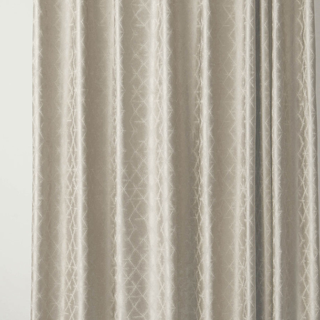 Diese luxuriösen Jacquard-Sternmuster-Beige-Creme-Kunstseidenvorhänge sind modern und stilvoll. Das seidige Material und die neutrale Farbe ergänzen jeden Raum Ihrer Wahl. Unsere maßgefertigten Vorhänge werden sorgfältig nach Ihren spezifischen Wünschen gefertigt. Sie sind in einer Vielzahl von Kopfformen erhältlich, die Ihrem Geschmack entsprechen, darunter Schlingen, Ösen, Zwickfalten, Maßfalten, umgekehrte Kastenfalten, Schlaufen, Rückenschlaufen, Stangentasche und Wellenvorhänge. Entdecken Sie, wie seidige Satinvorhänge jeden Raum aufwerten können.