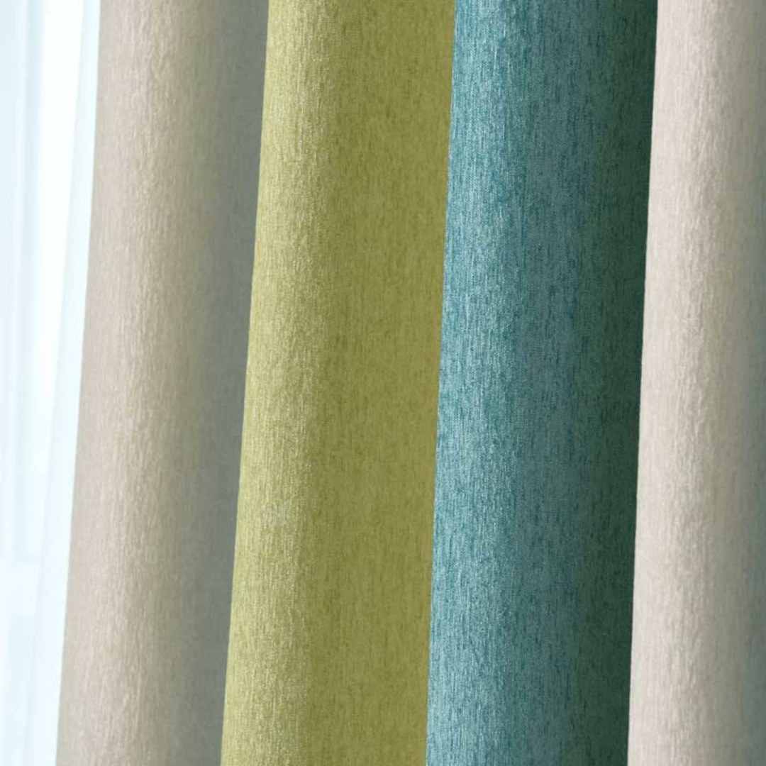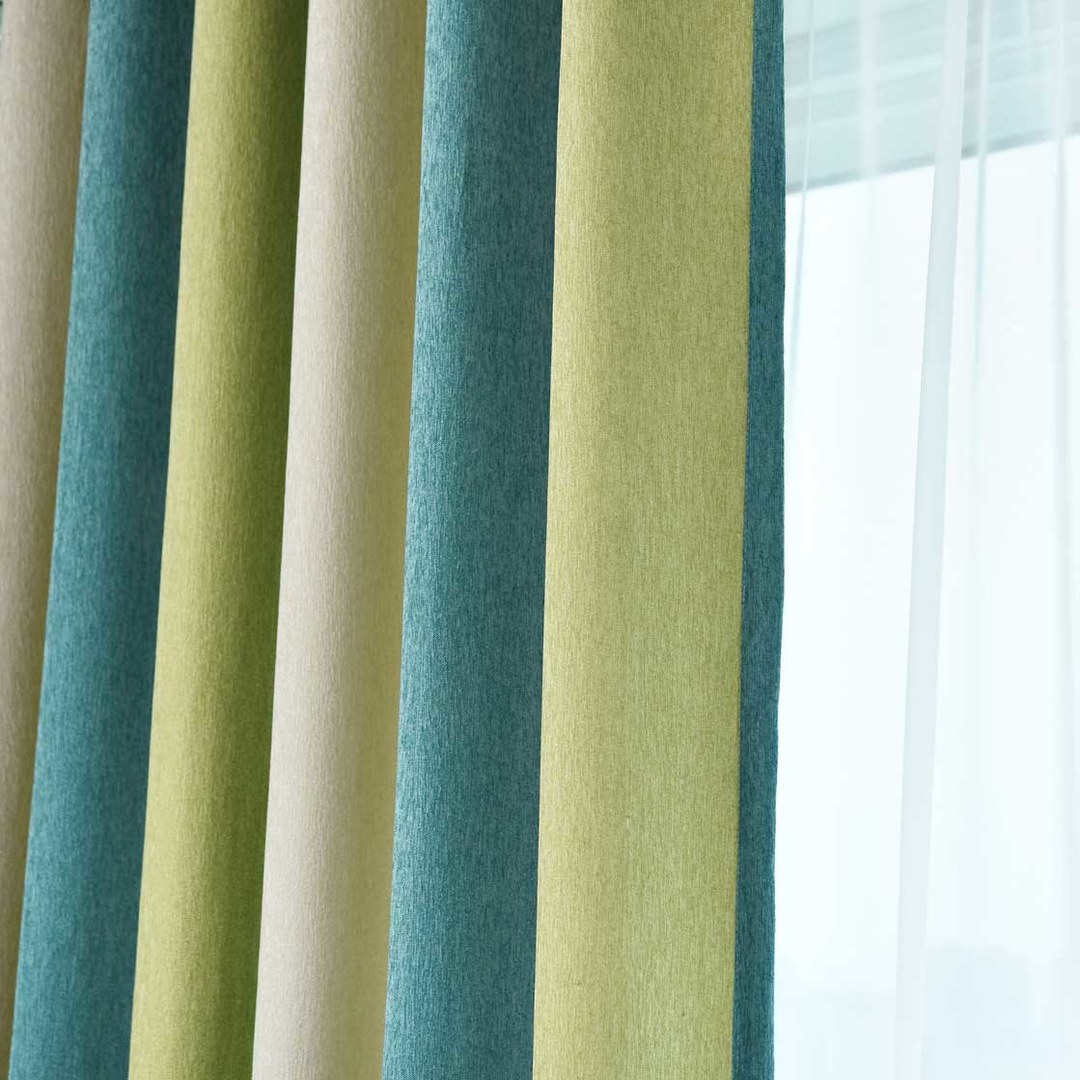 Hergestellt aus hochwertigem, dickem Chenille-Material, haben diese grün-blauen, kräftig gestreiften Chenille-Vorhänge eine samtige Textur, ein hohes Gewicht und eine liebenswerte Weichheit. Das einzigartige doppelseitige Design macht sie perfekt als Raumteiler und für Kubikelvorhänge. Unsere maßgefertigten Vorhänge werden genau auf Ihre Fensteranforderungen zugeschnitten und sind in einer Auswahl an Kopfformen erhältlich – Ösen, Schlaufen, Falten, Maßgefertigte Falten, Zwickfalten, umgekehrte Zwickfalten, Stangentasche und Wellenvorhänge. Entdecken Sie, wie doppelseitige Vorhänge jeden Raum verschönern können.
