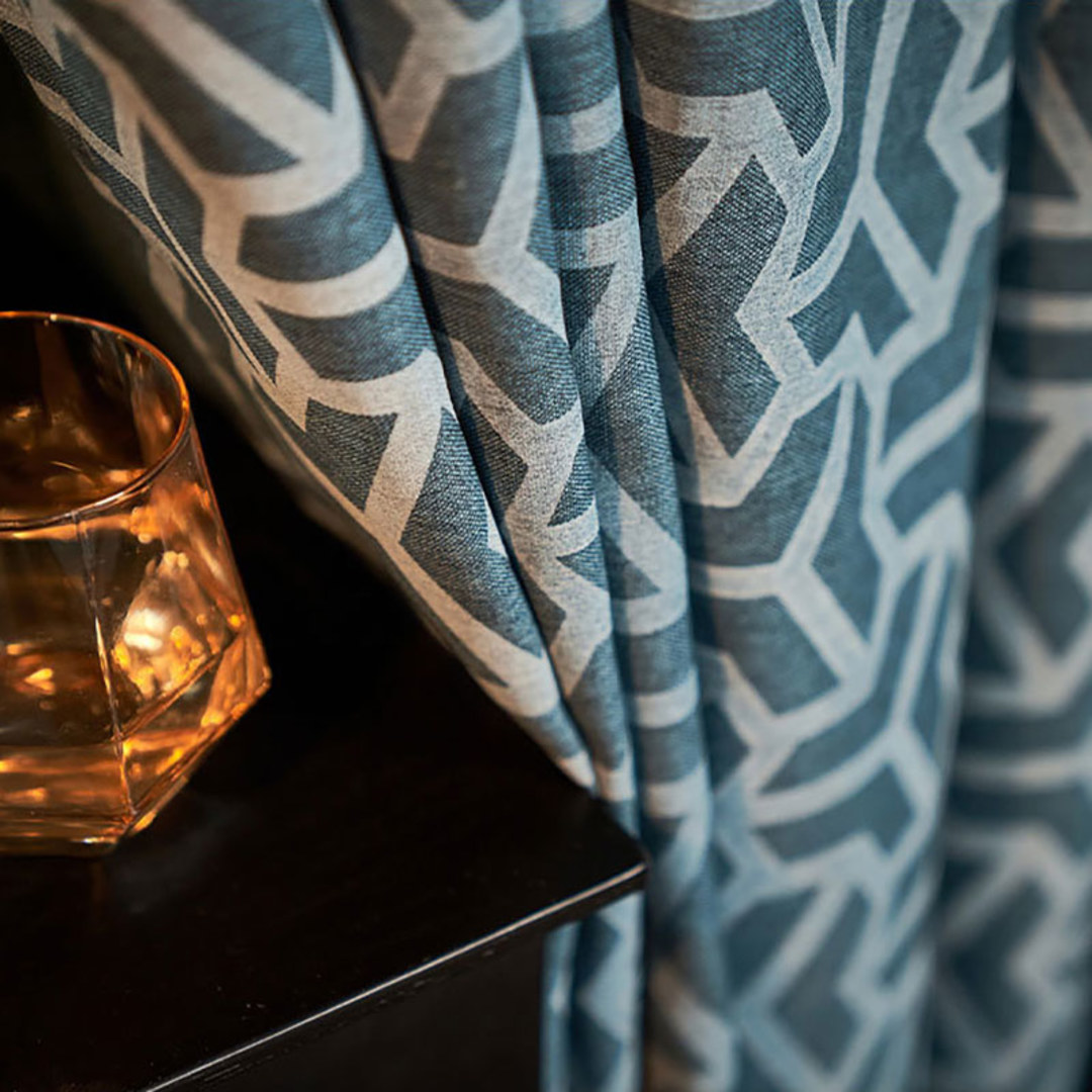 Erhalten Sie einen anspruchsvollen Look mit diesen modernisierten japanischen Schildpatt-Muster-Tessellations-Himmelblau-Vorhängen. Unsere maßgefertigten Vorhänge werden genau auf Ihre Anforderungen zugeschnitten und sind in verschiedenen Aufhängungsarten erhältlich – Ösen, Schlaufen, Plisseekraft, Zwickfalten, Maßplissees, umgekehrte Plissees, Stangentasche und Wellenvorhänge. Bestellen Sie passende Gardinenbänder und Kissen, um das gesamte Raumambiente zu verbessern.Art-Déco-Vorhang Ideen – die einfachen Möglichkeiten, um Ihrem Zuhause Glamour und Luxus zu verleihen.
