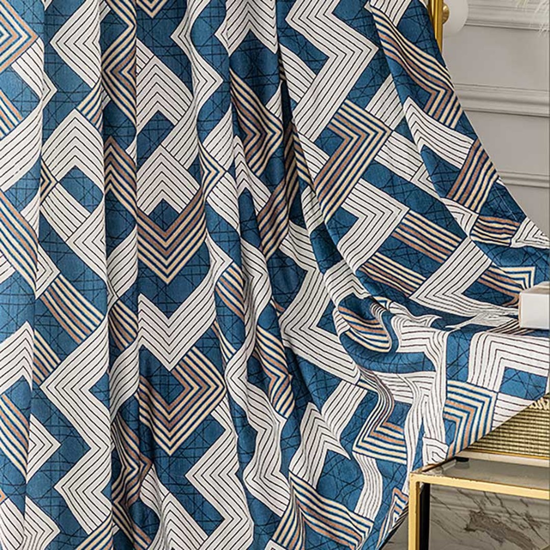 Die Farben und Formen verleihen Ihrem Raum eine wellenförmige Textur, die sich mit den anderen Elementen verbindet. Diese aus hochwertigem Chenille gefertigten Vorhänge zeichnen sich durch eine elegante Textur, ein hohes Gewicht und eine liebenswerte Weichheit aus. Unsere maßgefertigten Vorhänge werden sorgfältig nach Ihren spezifischen Wünschen gefertigt. Sie sind in einer Vielzahl von Kopfformen erhältlich, die Ihrem Geschmack entsprechen, darunter Schlingen, Ösen, Plissees, Maßplissees, umgekehrte Kastenfaltung, Schlaufen, Rückenschlaufen, Schlauchtasche und Wellenvorhänge. Bestellen Sie passende Gardinenbänder und Kissen, um das gesamte Raumambiente zu verbessern. Entdecken Sie, wie geometrische Vorhänge jeden Raum aufwerten können. *Der Stoff hat keine bestimmte Richtung und kann sowohl horizontal als auch vertikal verwendet werden. Dies ist vorteilhaft für die Herstellung von extra langen oder extra breiten Vorhängen.
