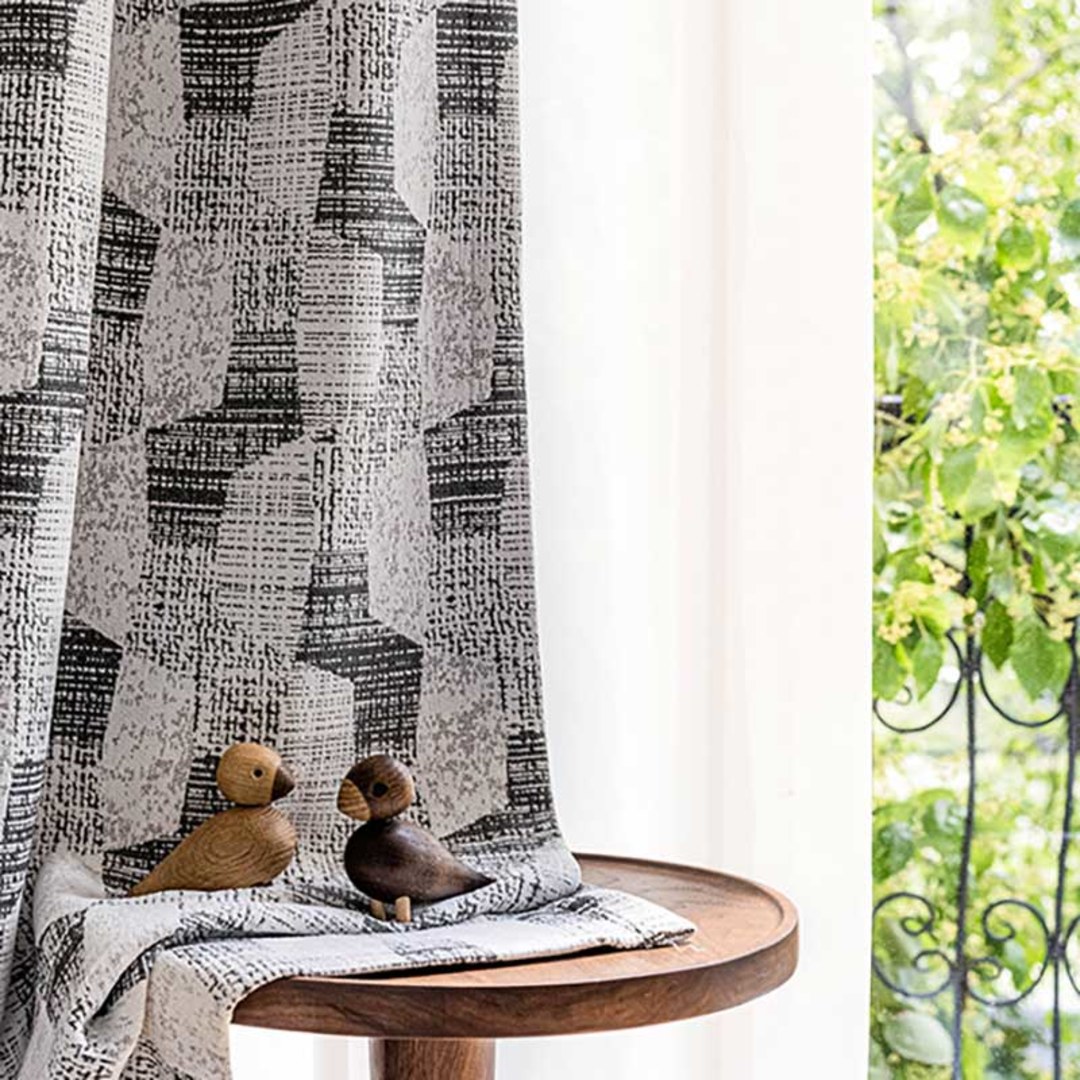 Hergestellt aus hochwertigem Chenille, haben diese modernen schwarz-weißen geometrischen Vorhänge eine elegante Textur, ein hohes Gewicht und eine liebenswerte Weichheit. Unsere maßgefertigten Vorhänge werden sorgfältig gefertigt, um Ihren spezifischen Vorlieben gerecht zu werden. Sie sind in einer Vielzahl von Aufhängungsarten erhältlich, die Ihrem Geschmack entsprechen, darunter Schlingen, Ösen, Stillfalten, Maßfalten, umgekehrte Kastenplissees, Schlaufen, Rückenschlaufen, Stangentasche und Wellenvorhänge. Bestellen Sie passende Gardinenbänder und Kissen, um das gesamte Raumambiente zu verbessern. Entdecken Sie, wie geometrische Vorhänge jeden Raum modernisieren können.