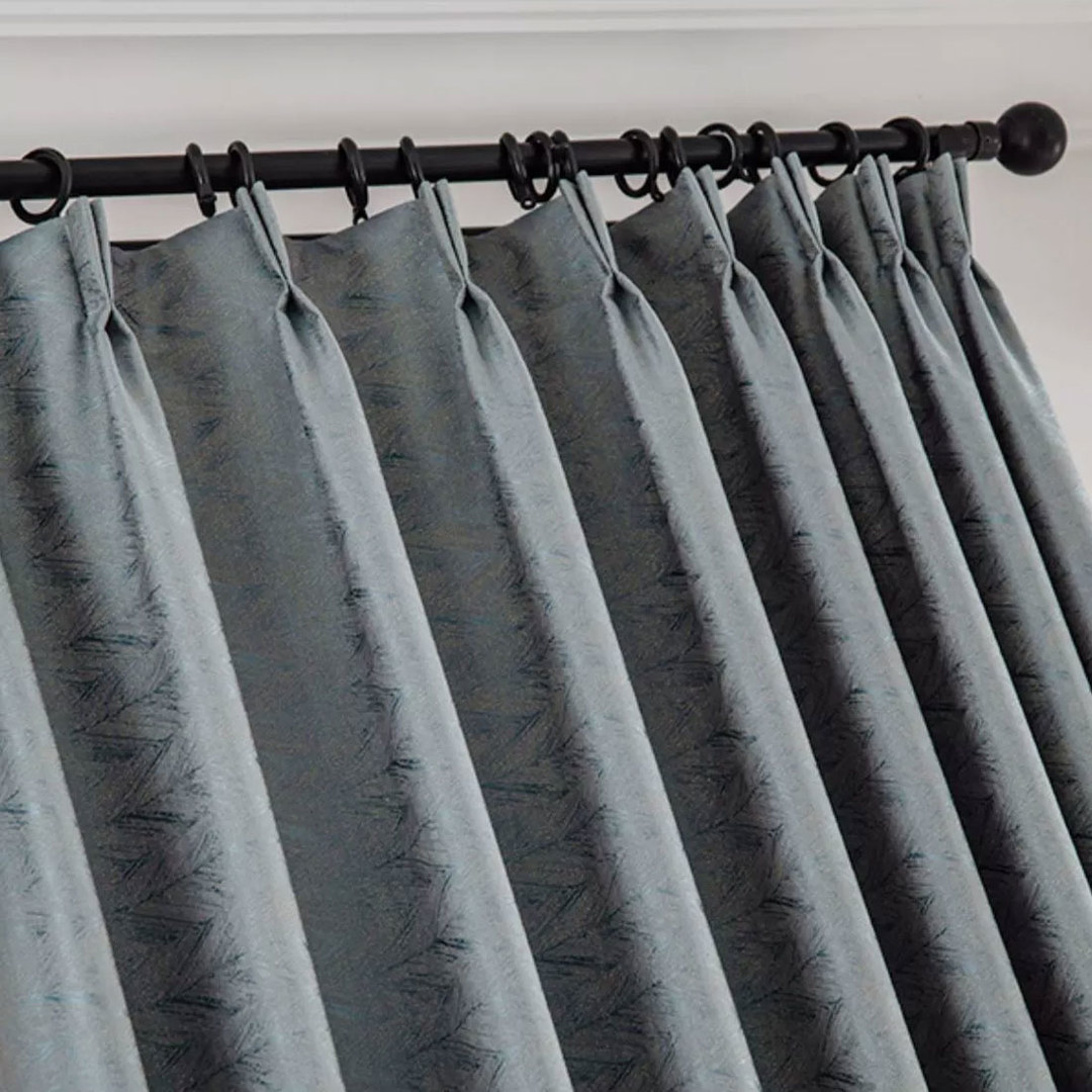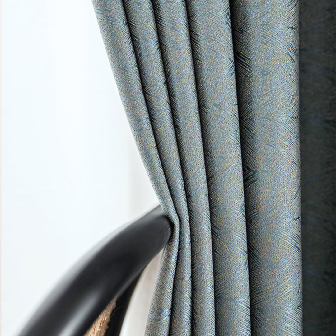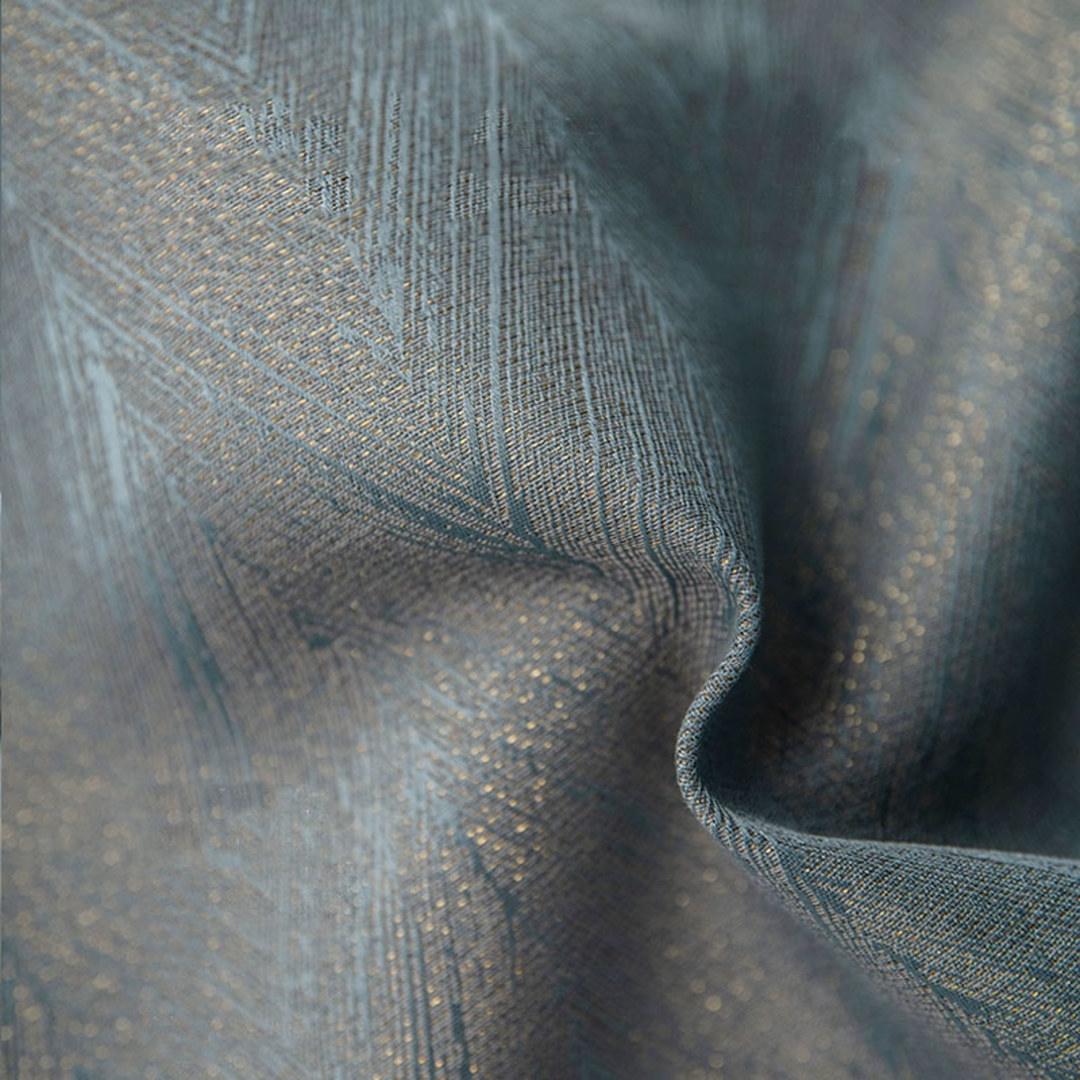 Erzielen Sie einen luxuriösen Look mit Jacquard-Fischgrätmuster in Enteneiblau und Goldglanz-Blackout-Vorhängen. Dieses moderne Design ergänzt jeden Raum Ihrer Wahl und dient als auffälliges Dekorationselement.