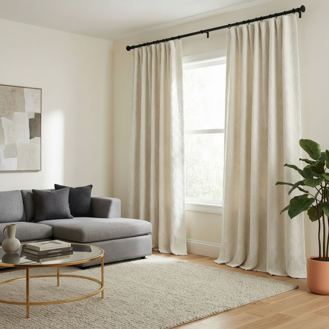 Dieser weiche Chenillestoff zeichnet sich durch ein strukturiertes geometrisches Muster mit einem ineinandergreifenden Diamantdesign aus. Das Muster des Stoffes verleiht einen Hauch von Eleganz und Raffinesse. Das Chenille-Material ist bekannt für seine Weichheit und sein luxuriöses Gefühl und bietet sowohl Komfort als auch Stil für jeden Raum. Unsere maßgefertigten Vorhänge werden sorgfältig nach Ihren spezifischen Wünschen gefertigt. Sie sind in einer Vielzahl von Kopfformen erhältlich, die Ihrem Geschmack entsprechen, darunter Schlitze, Ösen, Zwickfalten, Maßfalten, umgekehrte Kastenfalten, Schlaufen, Rückenschlaufen, Stangentasche und Wellenvorhänge. Entdecken Sie, wie geometrische Vorhänge jeden Raum aufwerten können.