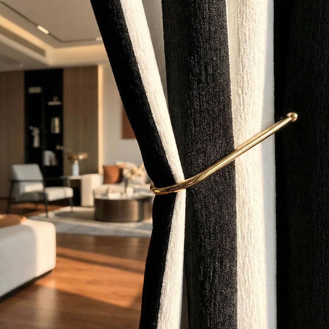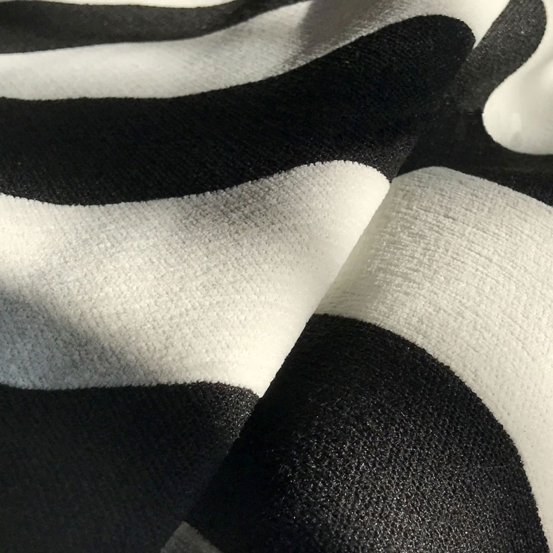 Hergestellt aus hochwertigem Chenille, haben diese modernen schwarz-weißen gestreiften Vorhänge eine elegante Textur, ein hohes Gewicht und eine liebenswerte Weichheit. Das einzigartige doppelseitige Design macht sie perfekt als Raumteiler und für Kubikvorhänge. Unsere maßgefertigten Vorhänge werden sorgfältig nach Ihren spezifischen Wünschen gefertigt. Sie sind in einer Vielzahl von Aufhängungsarten erhältlich, die Ihrem Geschmack entsprechen, darunter Schlingen, Ösen, Zwickfalten, Maßfalten, umgekehrte Kastenfalten, Schlaufen, Rückenschlaufen, Schlauchtasche und Wellenvorhänge. Entdecken Sie, wie gestreifte Vorhänge jeden Raum aufwerten können. HINWEIS: Doppelseitiger Stoff bedeutet nicht unbedingt, dass beide Seiten identisch aussehen. Stattdessen sind beide Seiten von hoher Qualität und können effektiv zur Herstellung von Vorhängen verwendet werden. Bitte bestellen Sie KOSTENLOSE Muster, um den Stoff zu sehen und zu fühlen.