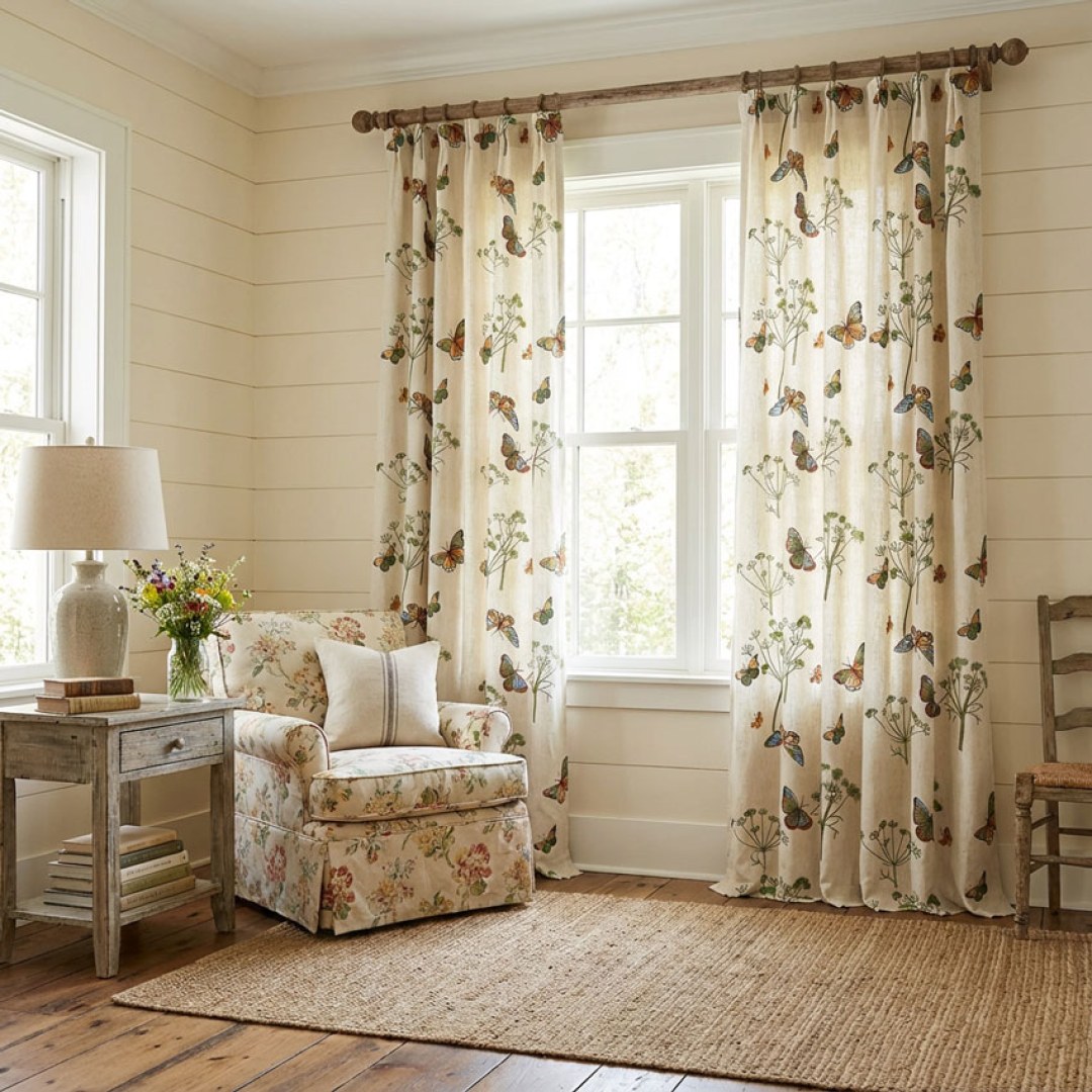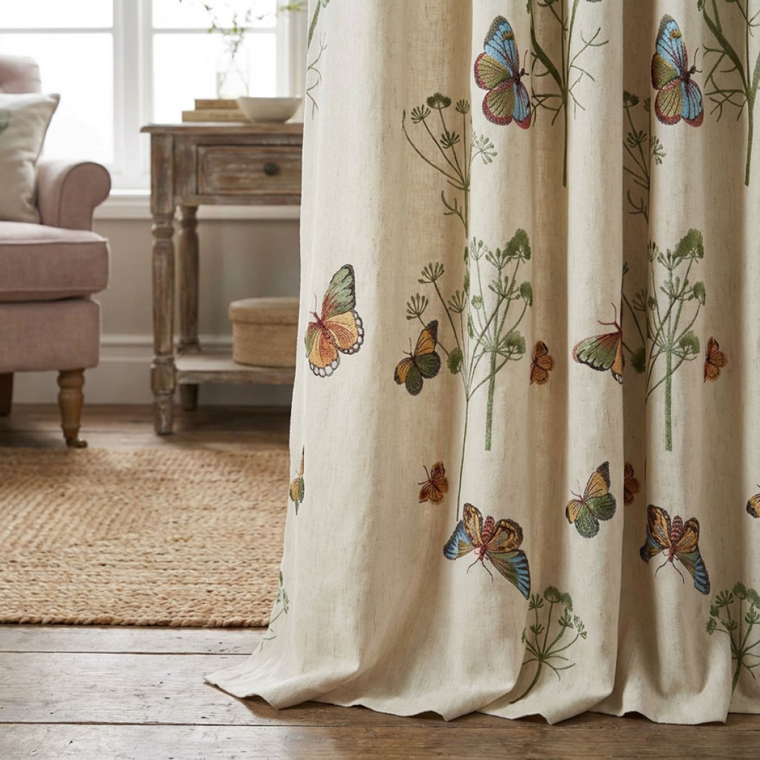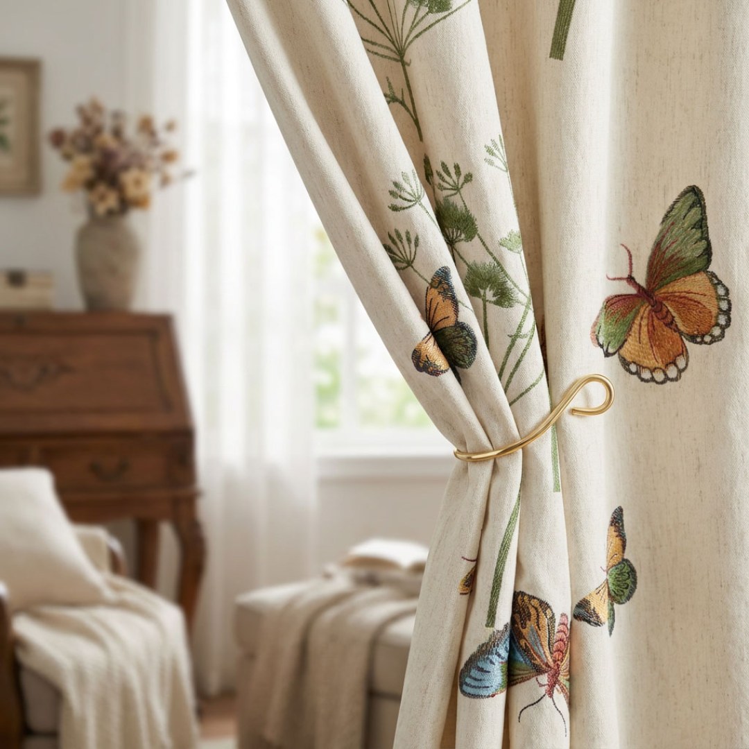 In einem zarten Ballett voller Anmut schmückt der Butterfly Garden Floral Embroidered Curtain Ihr Fenster wie eine lebendige Leinwand. Jeder Stich flüstert Geschichten von leuchtenden Blüten und der sanften Berührung von Schmetterlingsflügeln und bringt die Poesie eines Gartens in Ihr Zuhause. Unsere maßgefertigten Vorhänge werden sorgfältig nach Ihren individuellen Wünschen gefertigt. Sie sind in verschiedenen Aufhängungsarten erhältlich, die Ihrem Geschmack entsprechen, darunter Schlaufenschlauch, Ösen, Faltenlegen, Maßschienen, umgekehrte Plissee, Schlaufen, Rückenschlaufen, Stangenschlaufen und Wave-Vorhang. Bestellen Sie passende Gardinenbänder, Kissen und Voile, um das gesamte Raumambiente zu unterstreichen. Entdecken Sie weitere exquisite bestickte Vorhänge.