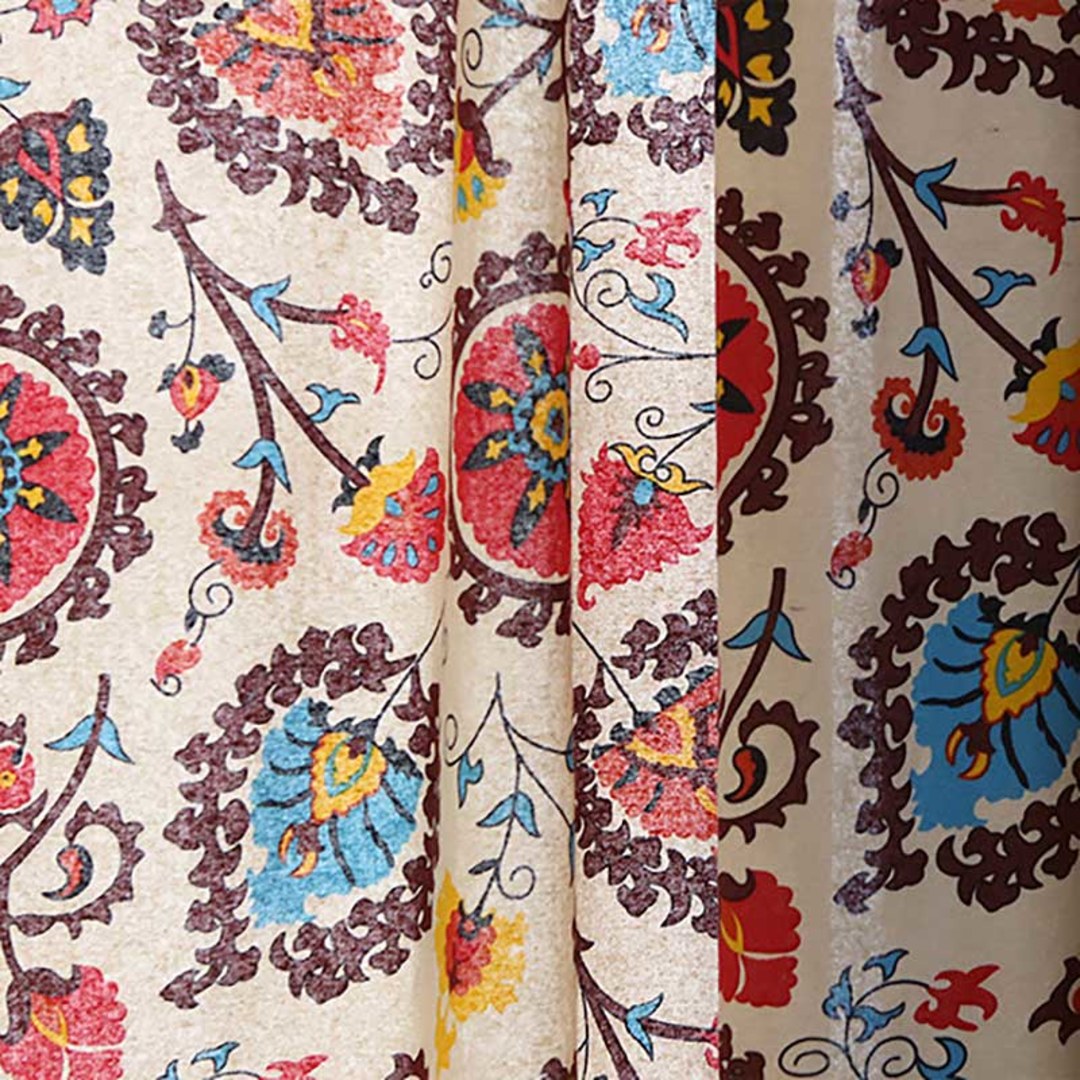 Diese böhmischen Vorhänge schaffen einen charakterstarken Raum durch ihre komplizierten Muster und lebendigen Farben. Unsere maßgefertigten Vorhänge werden sorgfältig gefertigt, um Ihren spezifischen Vorlieben gerecht zu werden. Sie sind in einer Vielzahl von Aufhängungsarten erhältlich, die Ihrem Geschmack entsprechen, darunter Schlingen, Ösen, Stillfalten, Maßfalten, umgekehrte Kastenplissees, Schlaufen, Rückenschlaufen, Tunnelzug und Wellenvorhänge. Entdecken Sie, wie böhmische Vorhänge jeden Raum aufwerten können. HINWEIS: Unsere Vorhänge werden ohne zusätzliche Bänder geliefert. Bitte kontaktieren Sie uns, wenn Sie Quasten hinzufügen möchten. Für die Abmessungen der Vorhänge fallen zusätzliche Gebühren an.