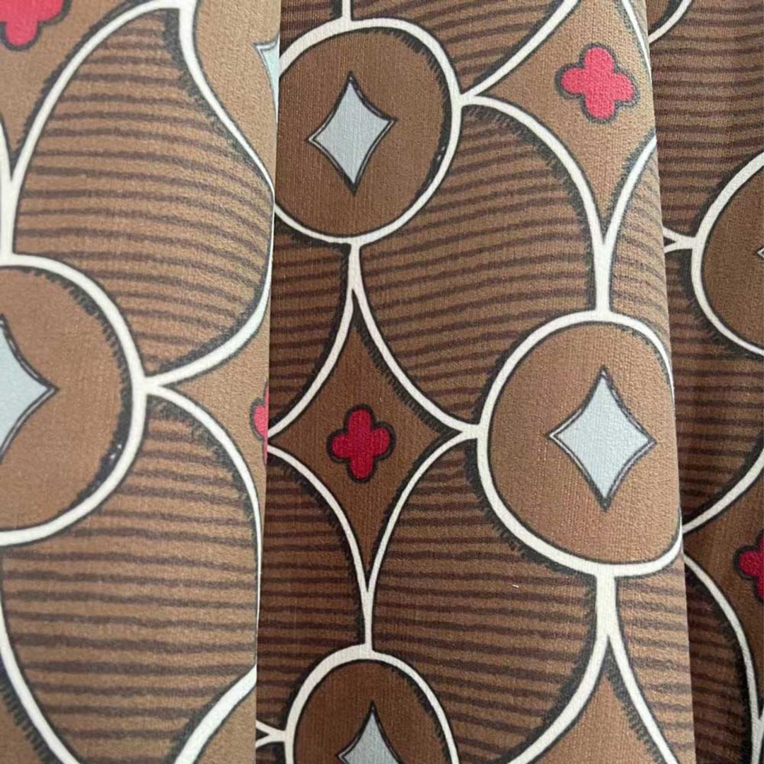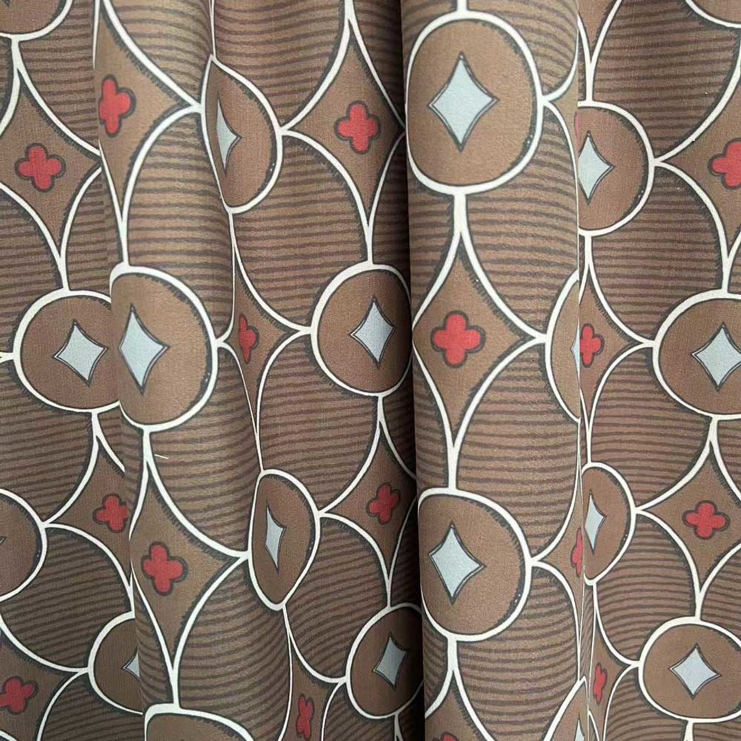 Hergestellt aus hochwertigem Chenille, sind diese modernen Quatrefoil geometrischen Rauten- und Kreismuster-Vorhänge eine perfekte Wahl für alle, die eine Mischung aus Schlichtheit und künstlerischem Flair in ihrer Einrichtung schätzen. Das aufwendige Design zeichnet sich durch klare weiße Konturen auf einem satten braunen Hintergrund aus, während das rote Quatrefoil-Blumen- und blaue Rautenmuster Farbakzente und geometrisches Interesse setzen. Unsere maßgefertigten Vorhänge werden sorgfältig nach Ihren spezifischen Wünschen gefertigt. Sie sind in einer Vielzahl von Kopfformen erhältlich, die Ihrem Geschmack entsprechen, darunter Schlaufenschlauch, Ösen, Zwickfalten, Maßfalten, umgekehrte Kastenfalten, Schlaufen, Rückenschlaufen, Stangentasche und Wellenvorhänge.Entdecken Sie, wie geometrische Vorhänge jeden Raum aufwerten können.